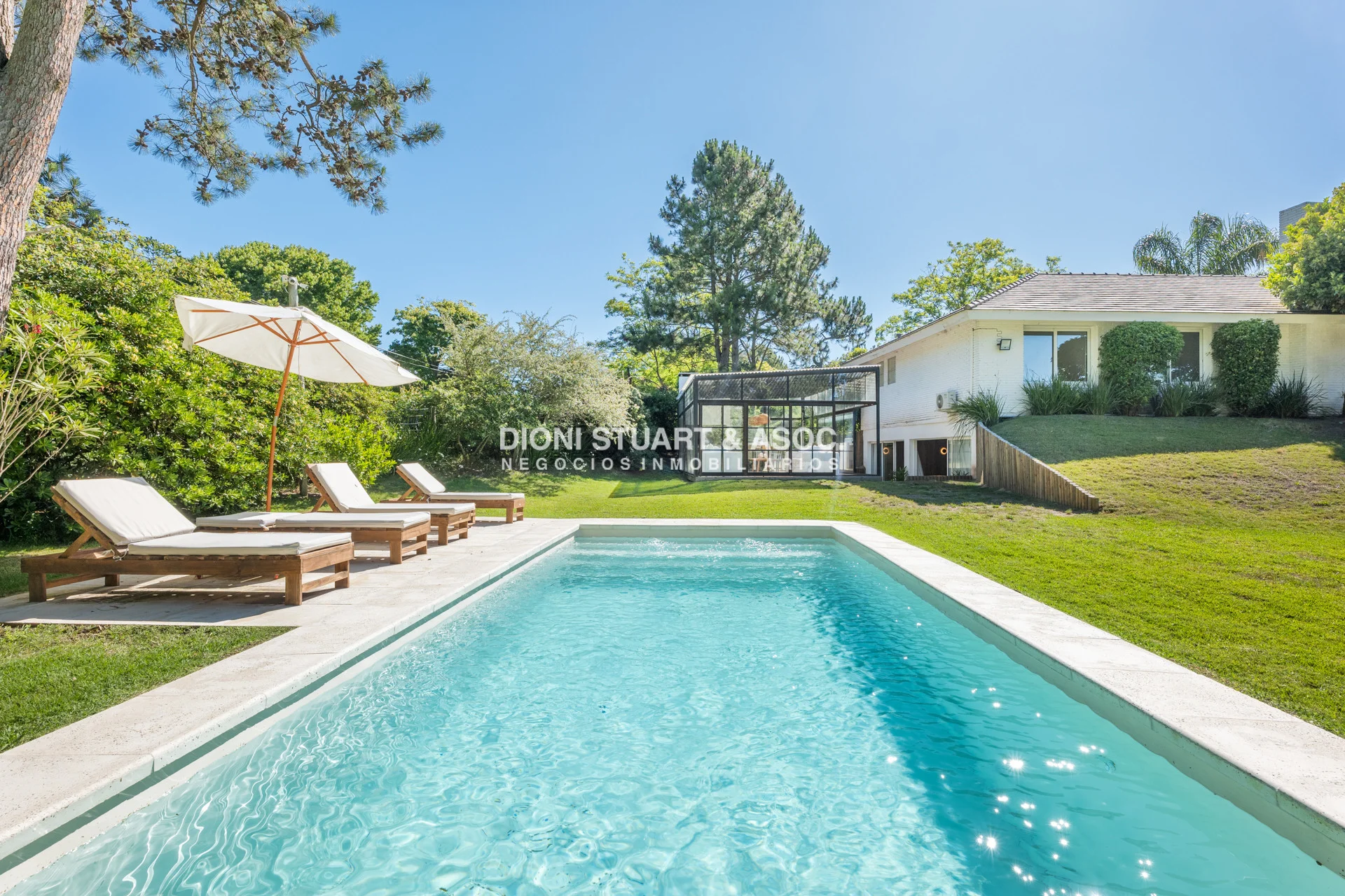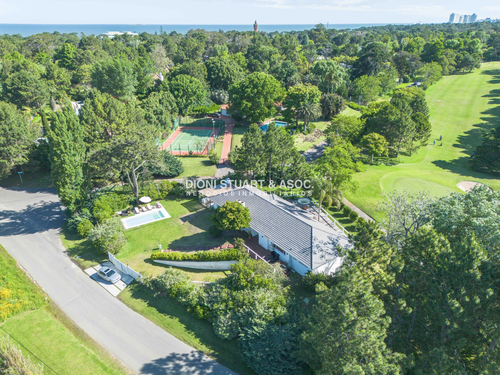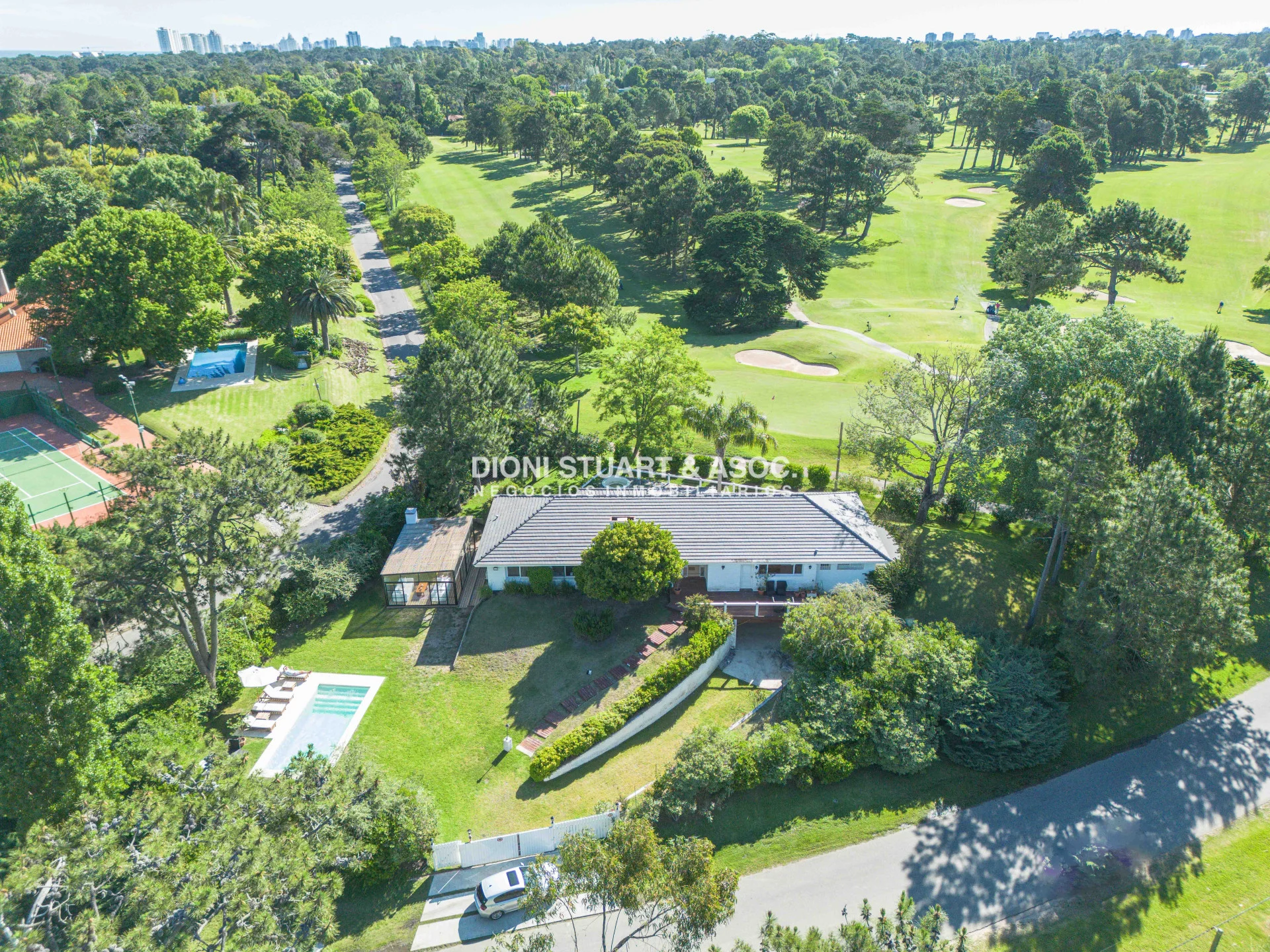 Poder adquirir esta casa es acceder a una ubicación privilegiada con acceso al Golf. Esta casa contempla 450m2 edificados en la mejor construcción sobre un lote esquinero de 1886m2 que comparte medianera con el Hoyo 7 del Golf, lo que permite, desde ciertos lugares de la casa, acceder a una vista muy particular sobre los campos de golf, tal cual como si fuese un espectador. La casa consta de 4 dormitorios y 4 baños (tres en suite), el dormitorio principal cuenta con doble baño y doble vestidor con placares empotrados; gran living-comedor con estar, del cual podremos apreciar la vista al golf y también acceder a una gran terraza con hidromasaje; cocina definida tipo americana con isla y toilette. En el subsuelo, la casa cuenta con un gran play-room con bar con barra, ideal para relajarse; dependencia de servicio con baño y deposito. Como si fuera poco, también ofrece piscina climatizada y una gran barbacoa cerrada. Loza radiante sectorizada, aberturas en DVH, Aire Acondicionado, algunas de sus características. Cuenta con garage para dos autos.