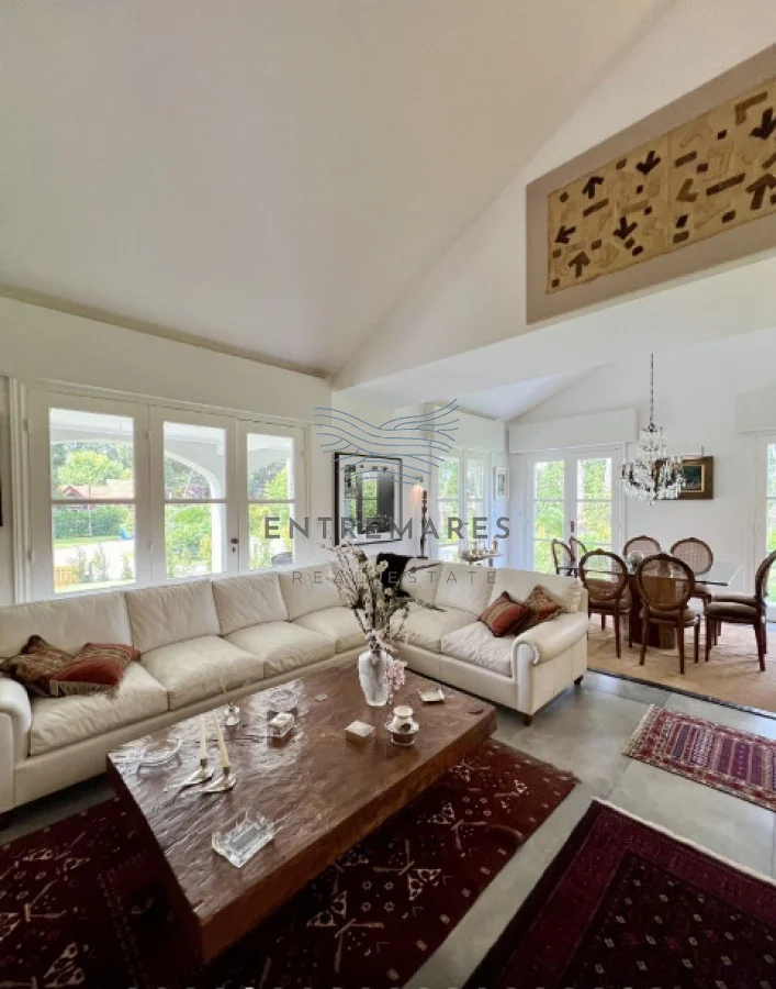 Casa de sólida construcción y totalmente reciclada en 2020 desarrollada en una planta con una increíble área de recepción, luminoso living y cómodo comedor con hermosos ventanales franceses.