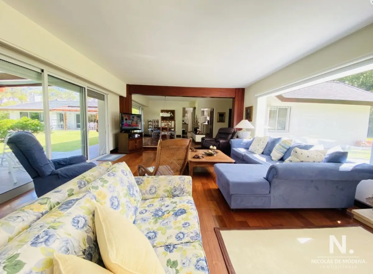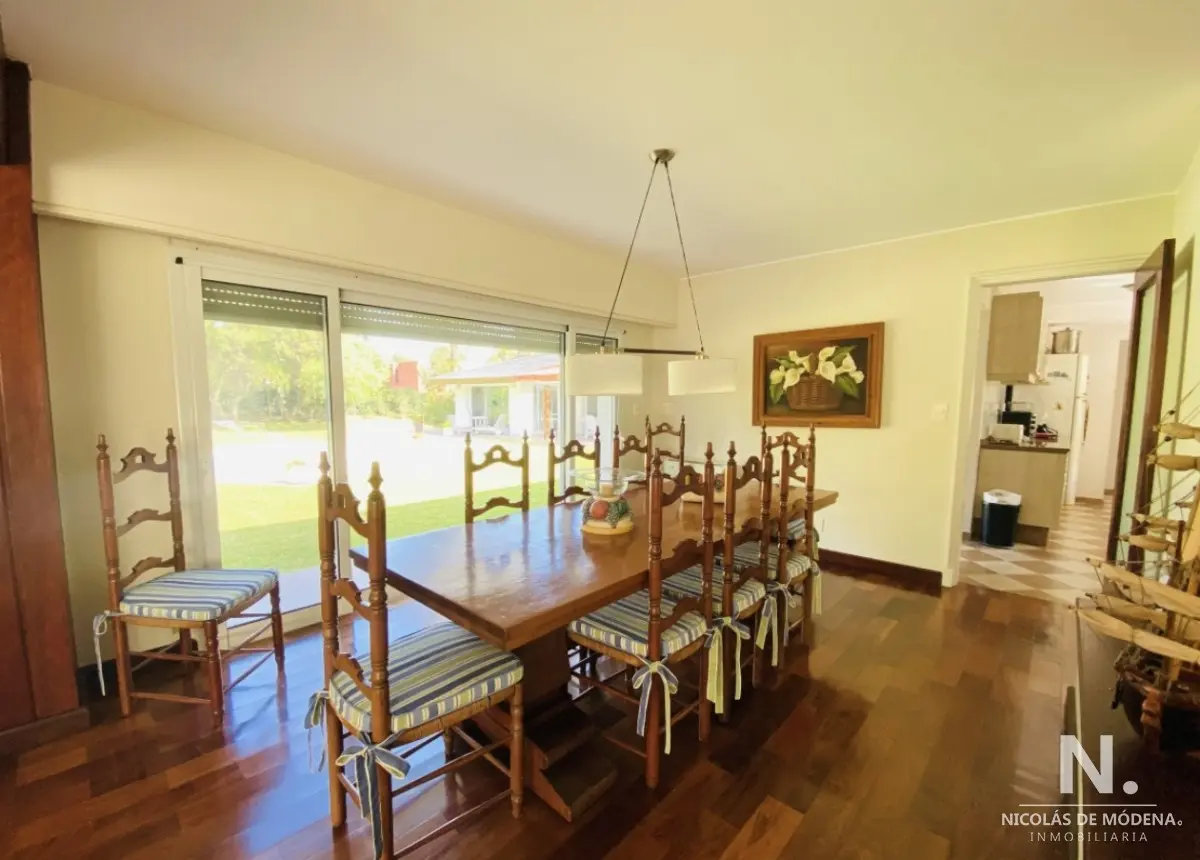 Esta propiedad de solida construcción cuenta con un amplio living con estufa a leña, comedor con grandes ventanales generando un espacio amplio y muy luminoso con salidas y vistas al jardín.