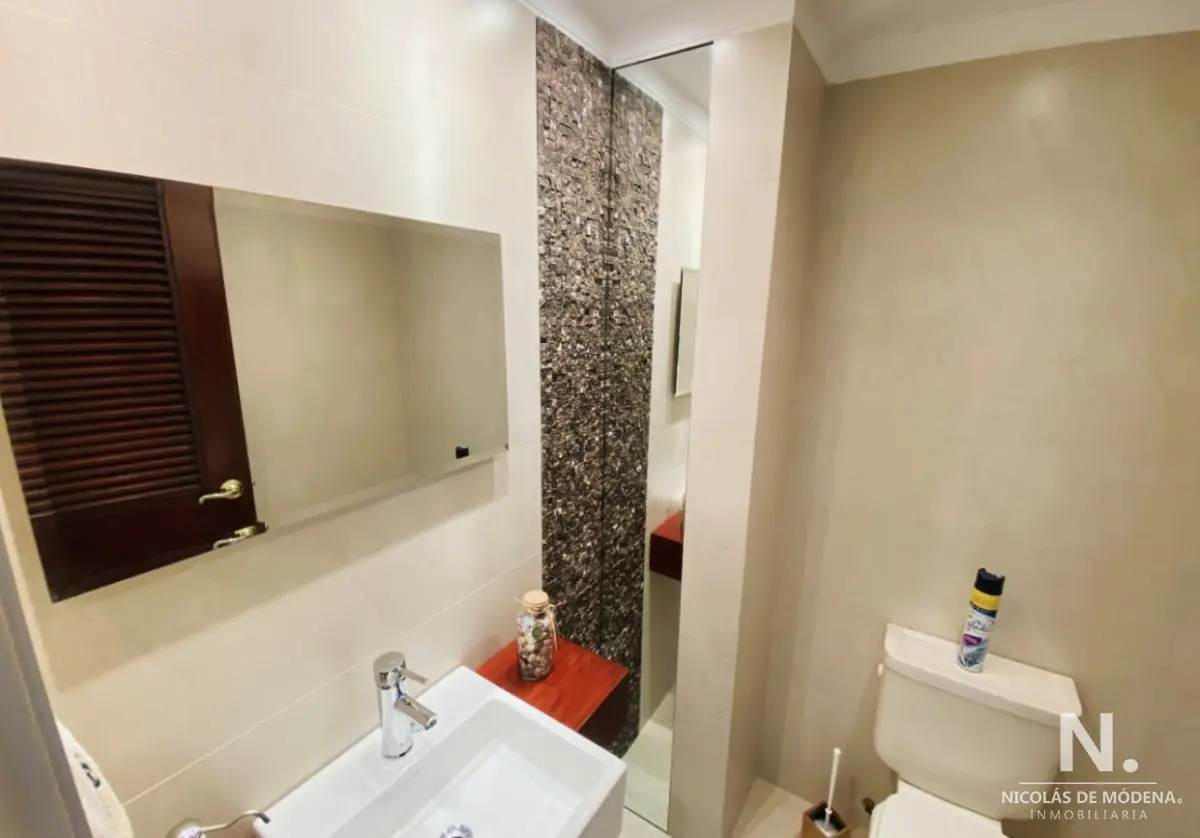 3 dormitorios, 1 suite, departamento de servicio completo o segunda suite quedando como cuarto dormitorio, baño social.