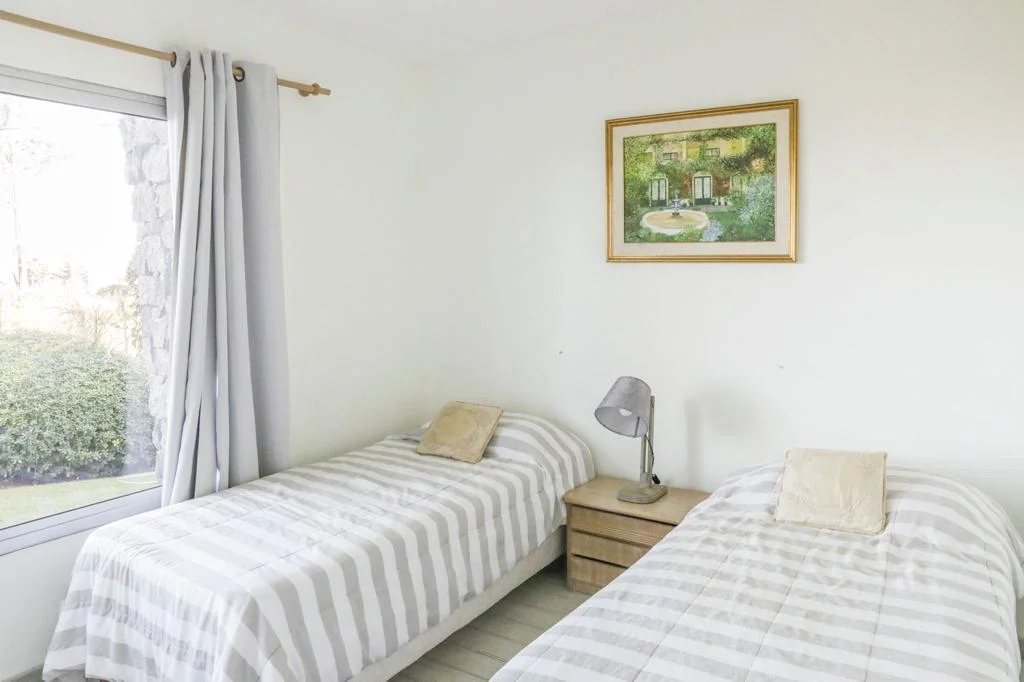 En planta baja tiene cuatro dormitorios con dos baños, dependencia de servicio. Parrillero y piscina.