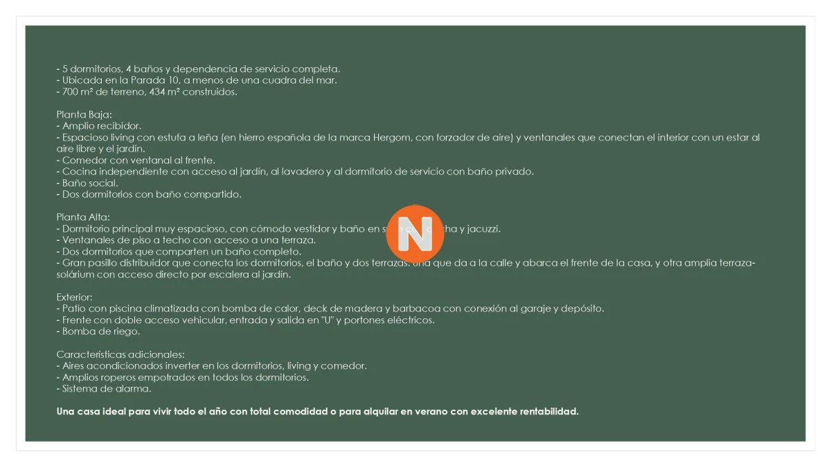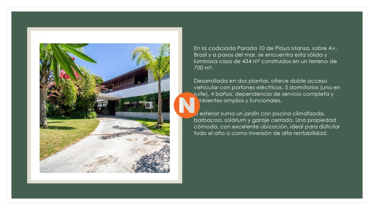 Descubre esta excepcional casa en la codiciada zona de Mansa, Punta del Este, donde el diseño contemporáneo se encuentra con la calidez del hogar. Con 5 amplios dormitorios, de los cuales 4 son suites, esta propiedad ofrece el espacio ideal para disfrutar en familia o recibir a amigos.