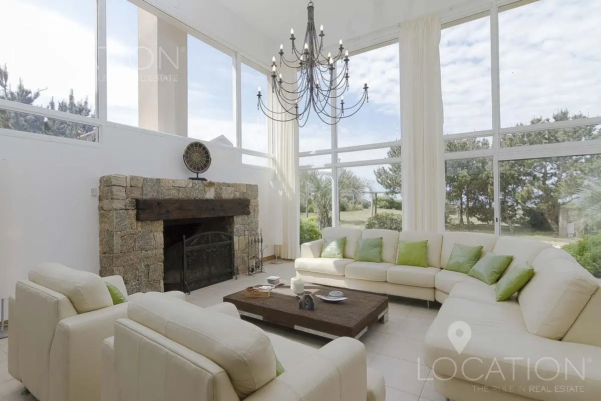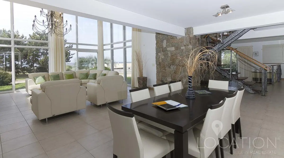 Desarrollada en dos plantas, con espacios grandes y mucha calidez, esta casa cuenta con gran living, altos vidrios con la mejor vista al mar y al pueblo, comedor, comedor diario, cocina amplia y muy equipada, toilette y dependencia de servicio.