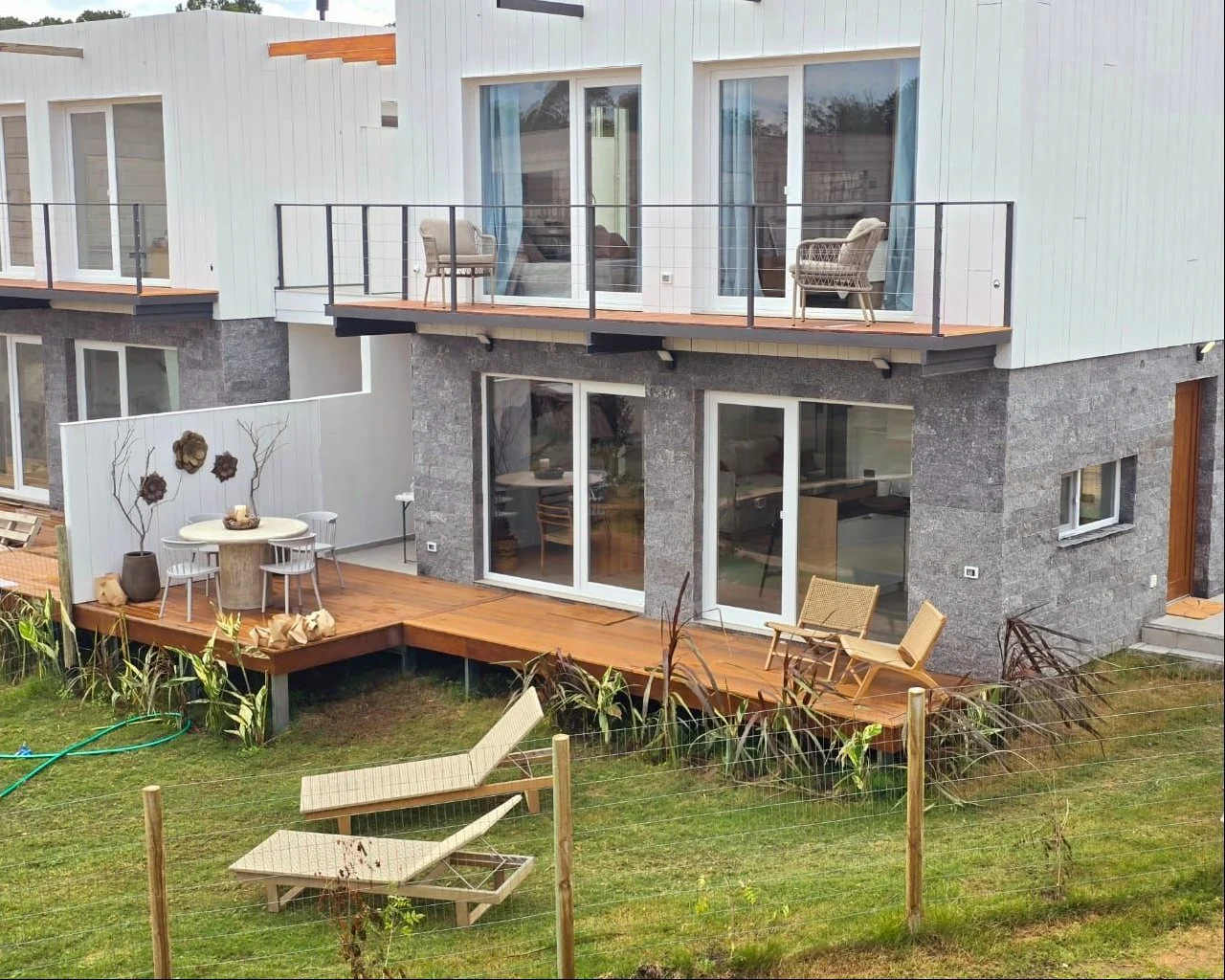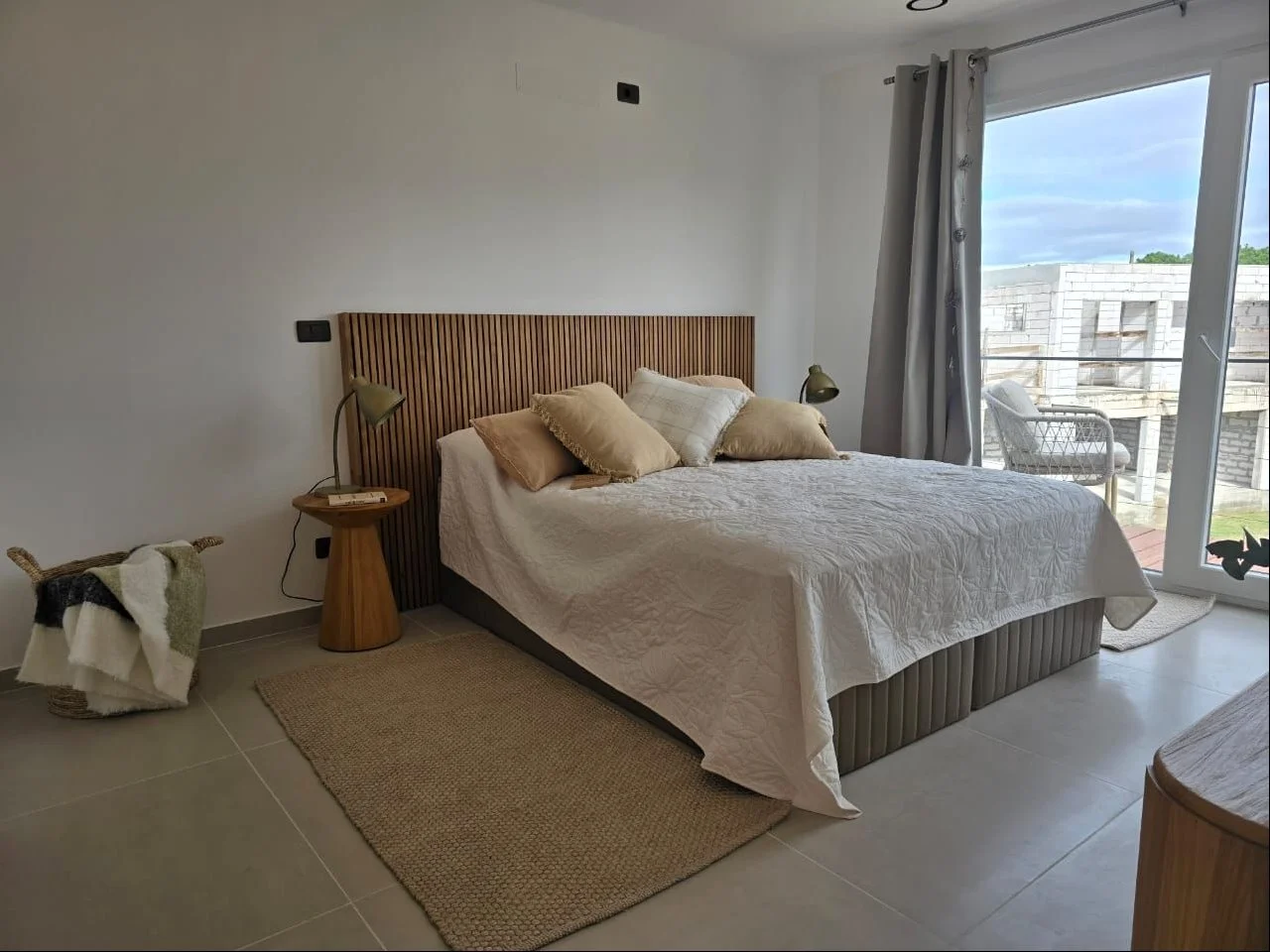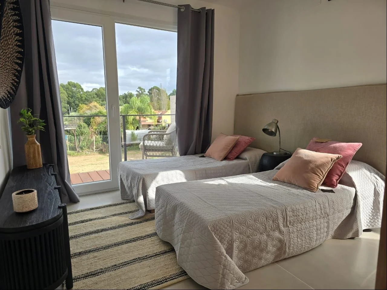 Espectacular casa a estrenar, a 500 mts playa Posta del Cangrejo. Distribuida en 2 plantas, con los recibos en PB, Living, comedor y cocina separada con una barra que permite sentarse y compartir mientras se cocina. Cuenta con un toilette con ducha lo que hace tener 2 baños completos en la casa. Salida a terraza, parrillero y jardín propio. En segundo piso se encuentra el dormitorio principal, muy amplio con balcón . Segundo dormitorio para 2 camas , balcón y un amplio baño completo. Se caracteriza por su luminosidad y excelentes terminaciones, con excelente aislación térmica y acústica. El complejo tiene 6 casas, y comparten una gran piscina central.