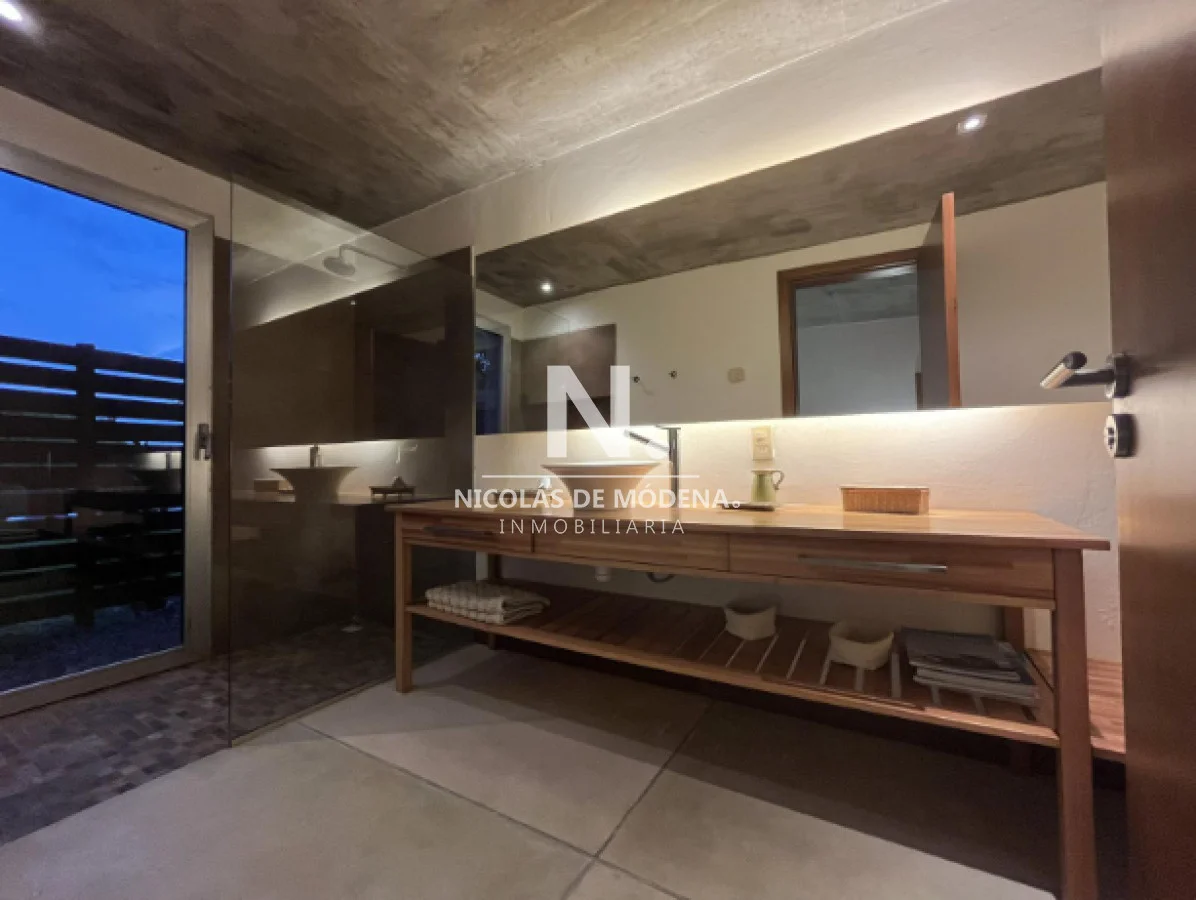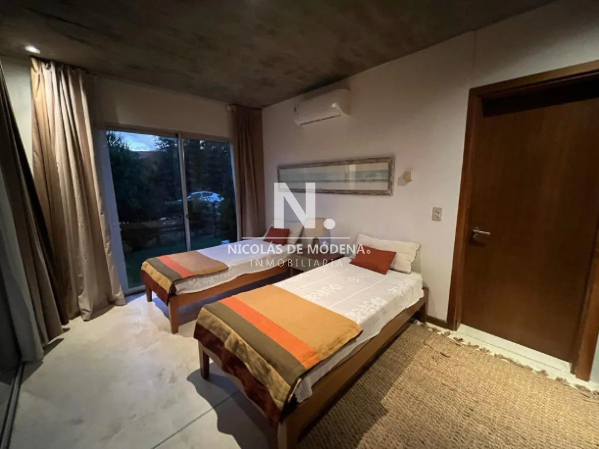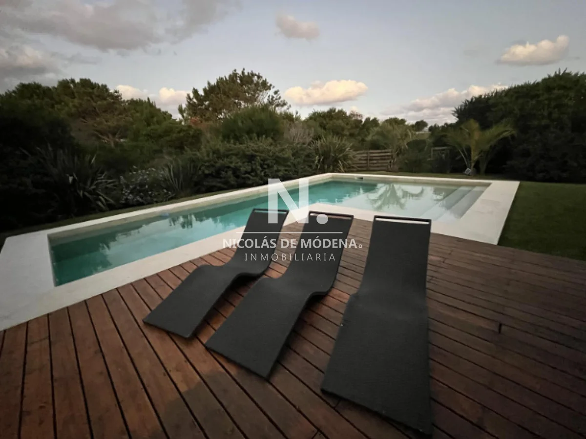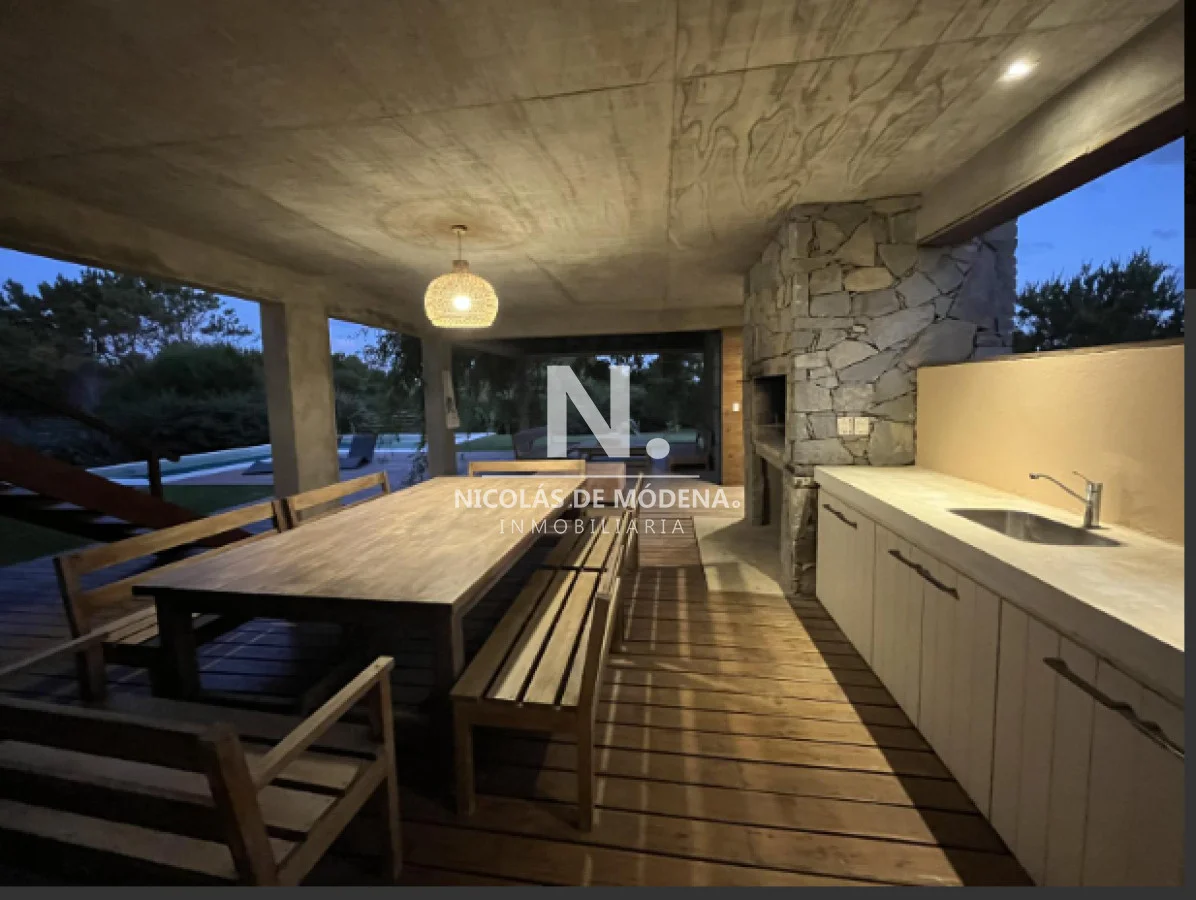 La casa cuenta con 5 dormitorios y 4 baños completos, proporcionando una capacidad de alojamiento para 10 personas, lo que garantiza amplitud y privacidad para todos los huéspedes. El diseño interior se distingue por espacios amplios y luminosos, incluyendo un living comedor integrado, perfecto para la convivencia y el entretenimiento. La cocina, completamente equipada, dispone de anafe, microondas, heladera con freezer, campana, horno y amplios placares, facilitando la preparación de comidas gourmet. Los dormitorios, diseñados para el máximo confort y privacidad, están equipados con placares y aire acondicionado, asegurando una temperatura agradable durante todo el año. Los baños, con acabados de alta calidad, incluyen bañera y bidet. El equipamiento adicional comprende T.V., ofreciendo opciones de entretenimiento para todos los residentes.