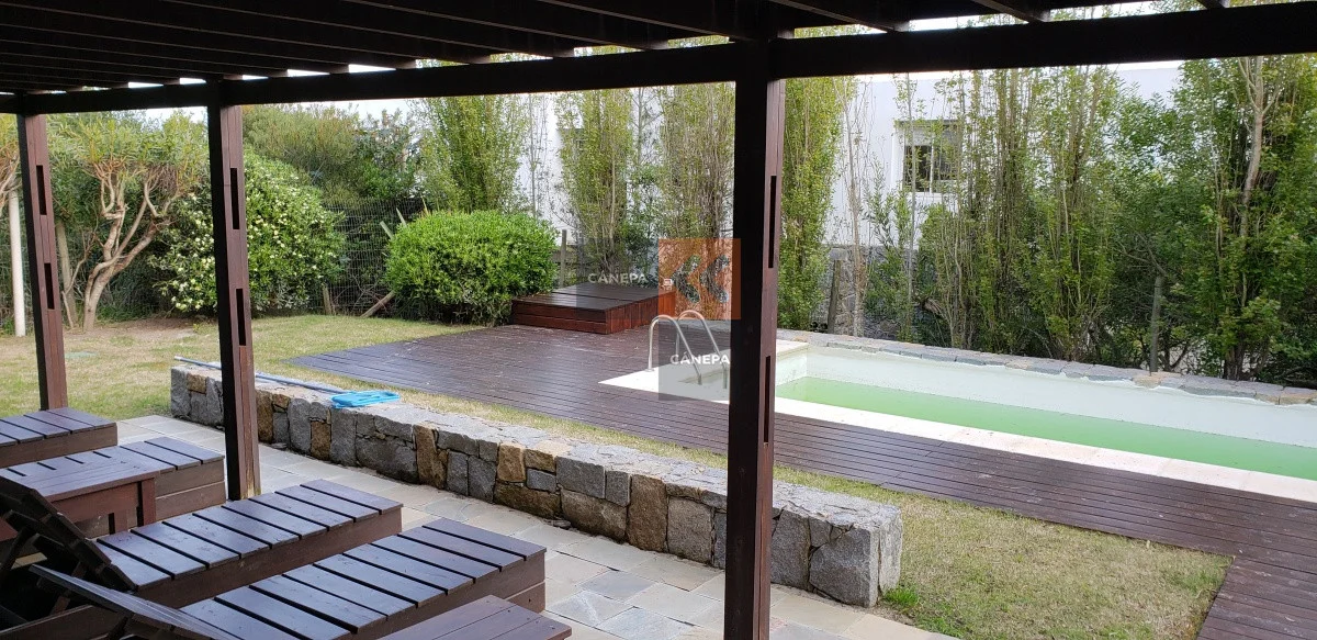 5 dormitorios ( 2 suites), todo lo loza radiante, dependencia de servicio completa , barbacoa, finamente amueblada, jardin y . piscina climatizada.
