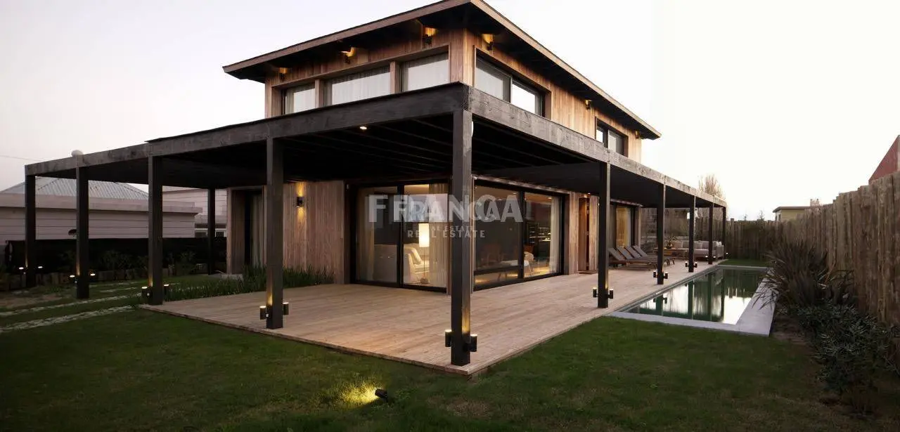 Casa en venta en El Chorro Construida en dos plantas, consta de 3 dormitorios, 4 baños, living comedor con una excelente luminosidad gracias a sus grandes aberturas que logran un diseño abierto, integrando interior y exterior. El jardin totalmente cerrado crea un ambiente seguro donde se puede disfrutar de la piscina, solarium y los espacios verdes. Las maderas nobles le dan un toque de calidez inigualable. La habitación principal cuenta con vestidor y grandes aberturas que dan muy agradables vistas del exterior. Cuenta con dependencia de servicio y toilette. Los espacios son muy bien utilizados, logrando un escritorio con hermosas vistas. . Caracteristicas: BALCON, COMEDOR, DORMITORIO EN SUITE, LAVADERO, SOTANO, TOILETTE, CONEXI?N A INTERNET, PARQUE, ALARMA, CALEFON, COCINA, HELADERA, LAVARROPAS, LUZ ELECTRICA, SANEAMIENTO, TELEFONO, WIFI, VISTA AL MAR XINTEL (FRO-FRO-39)