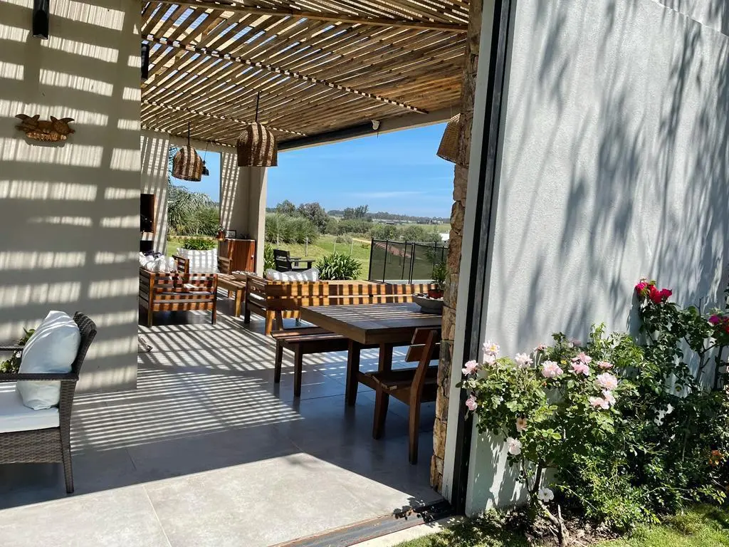 Ubicada en un entorno natural único dentro del barrio cerrado de Pueblo Mío. Impecable residencia sobre un amplio terreno de 4.000 m², ofreciendo privacidad, confort y preciosa vista al tajamar