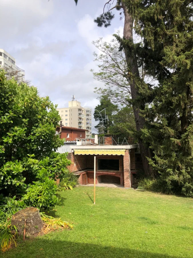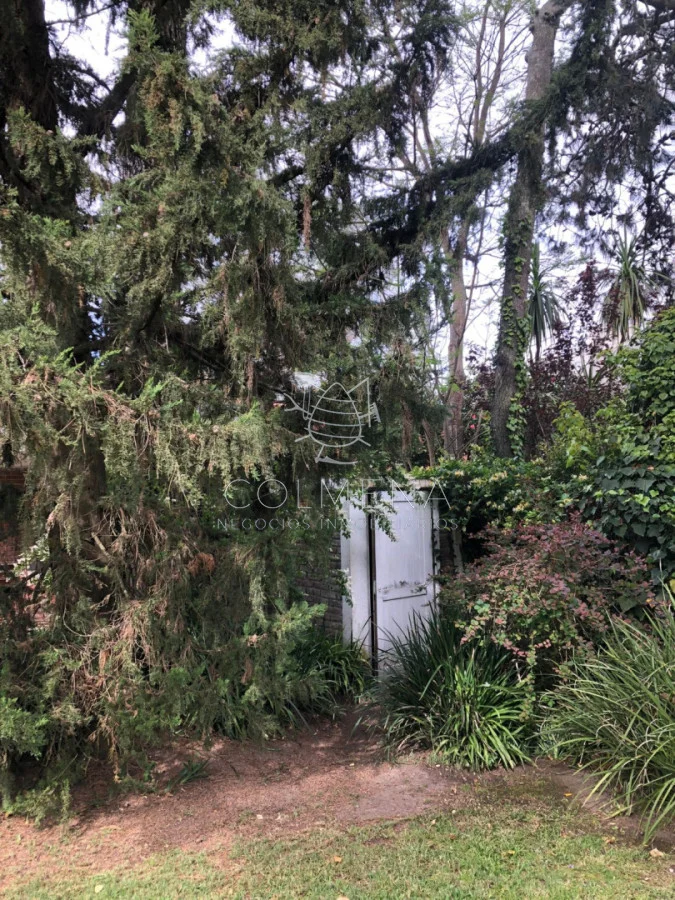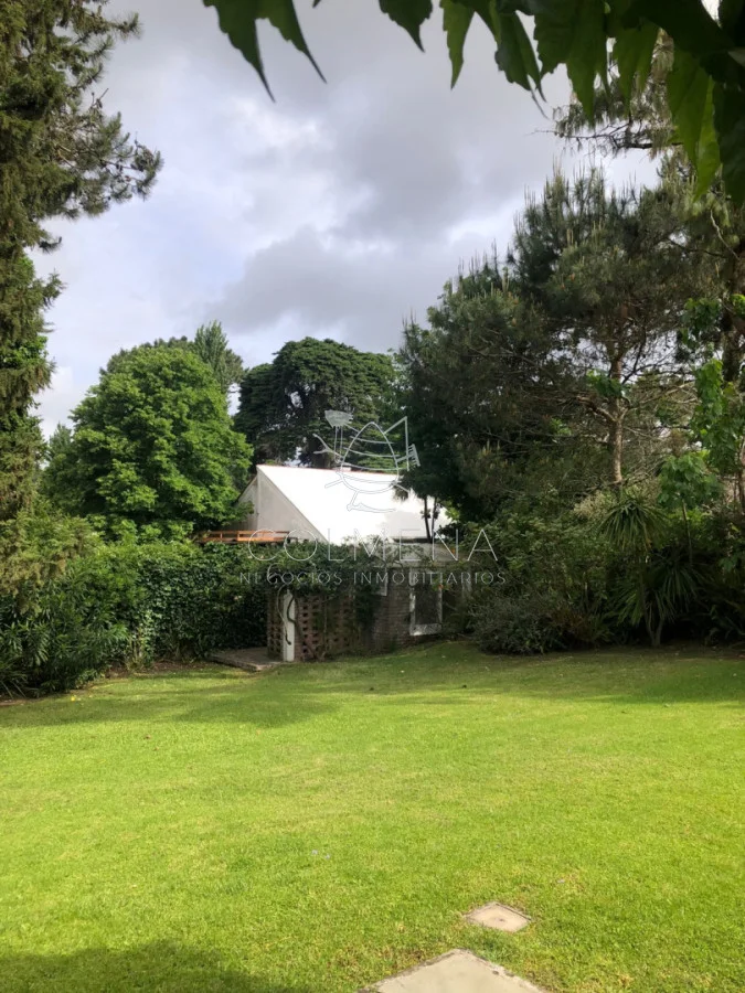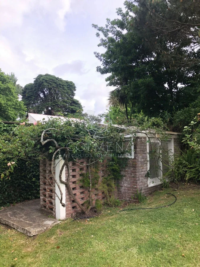 El garaje es cerrado y tiene espacio para dos autos. El gran patio incluye parrillero y tres espacios adicionales que pueden utilizarse como depósito. El jardín rodea la casa, aportando vistas a espacios verdes y proporcionando áreas de esparcimiento al exterior.