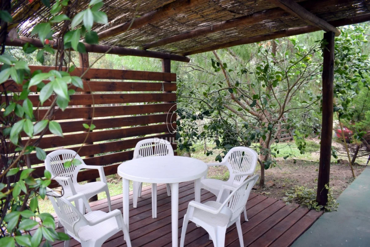 Ubicada en Playa Hermosa, con 50 m² edificados sobre una superficie total de 400 m². Construcción mixta, distribuida en living comedor con estufa a leña de hierro, kitchenette, dos dormitorios (principal con aire acondicionado) y baño. Al fondo, deck con pérgola y patio con parrillero. Cerca rodeando todo el perímetro. Por más información contáctenos.