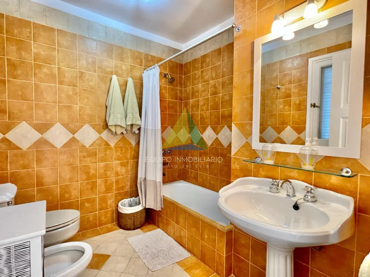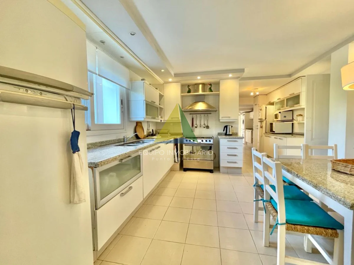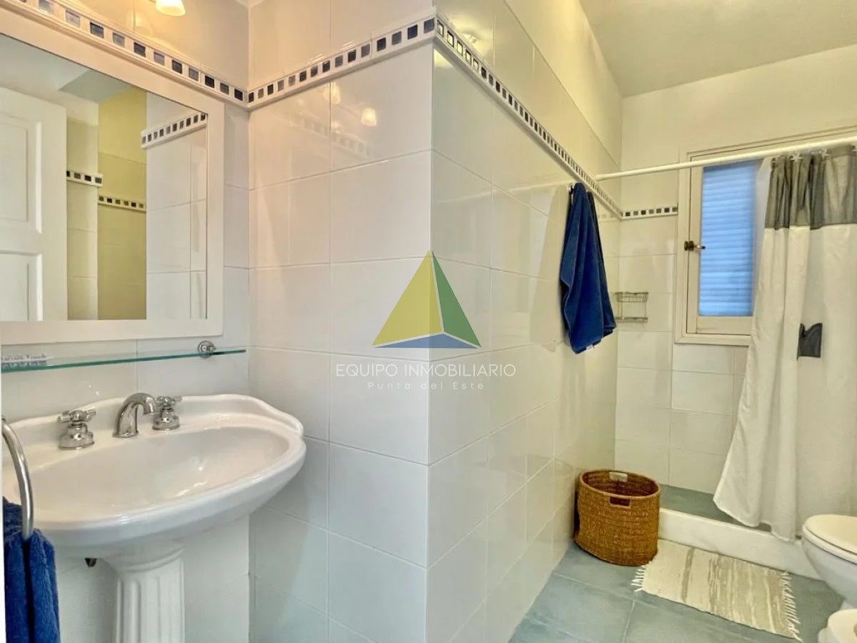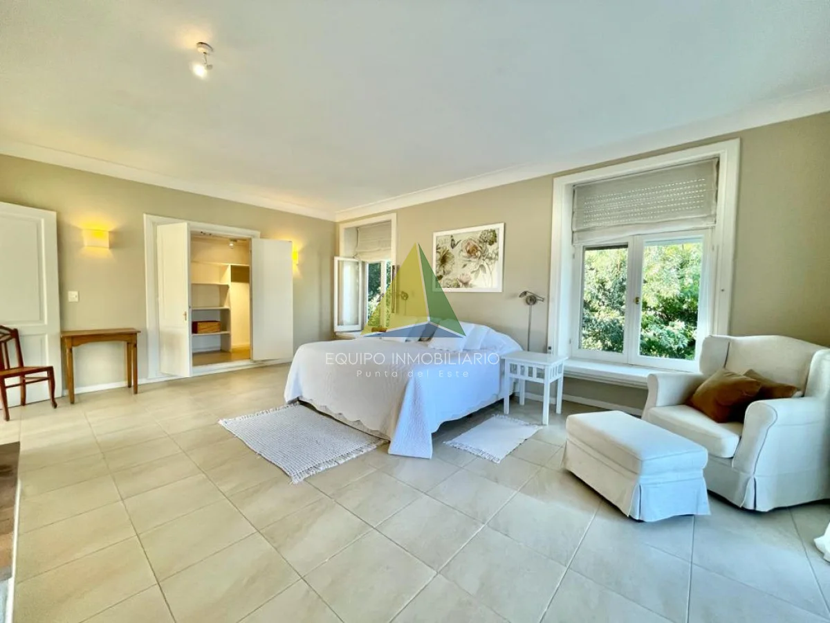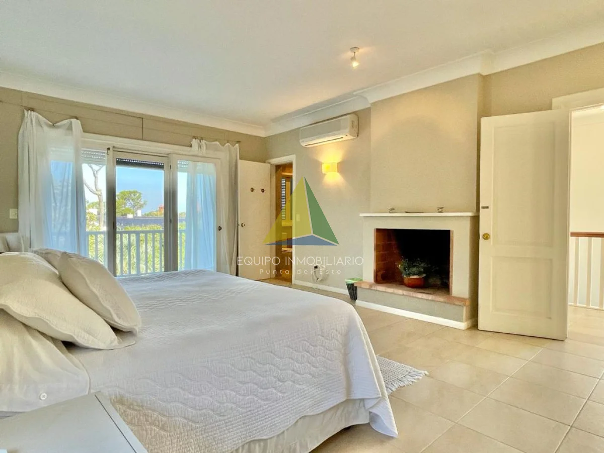 Casa en venta Playa Brava , muy lindo y gran parque esquinero. A cuadra y media de Rambla y la playa. Living , comedor cocina equipada, cochera, estacionamiento, comedor diario. Piscina climatizada, hogar a leña, lavadero y dependencia. Planta alta Gran suite con vista a la piscina. Planta a con balcón y vista al mar, mas tres suite. Habitación exterior en suite.