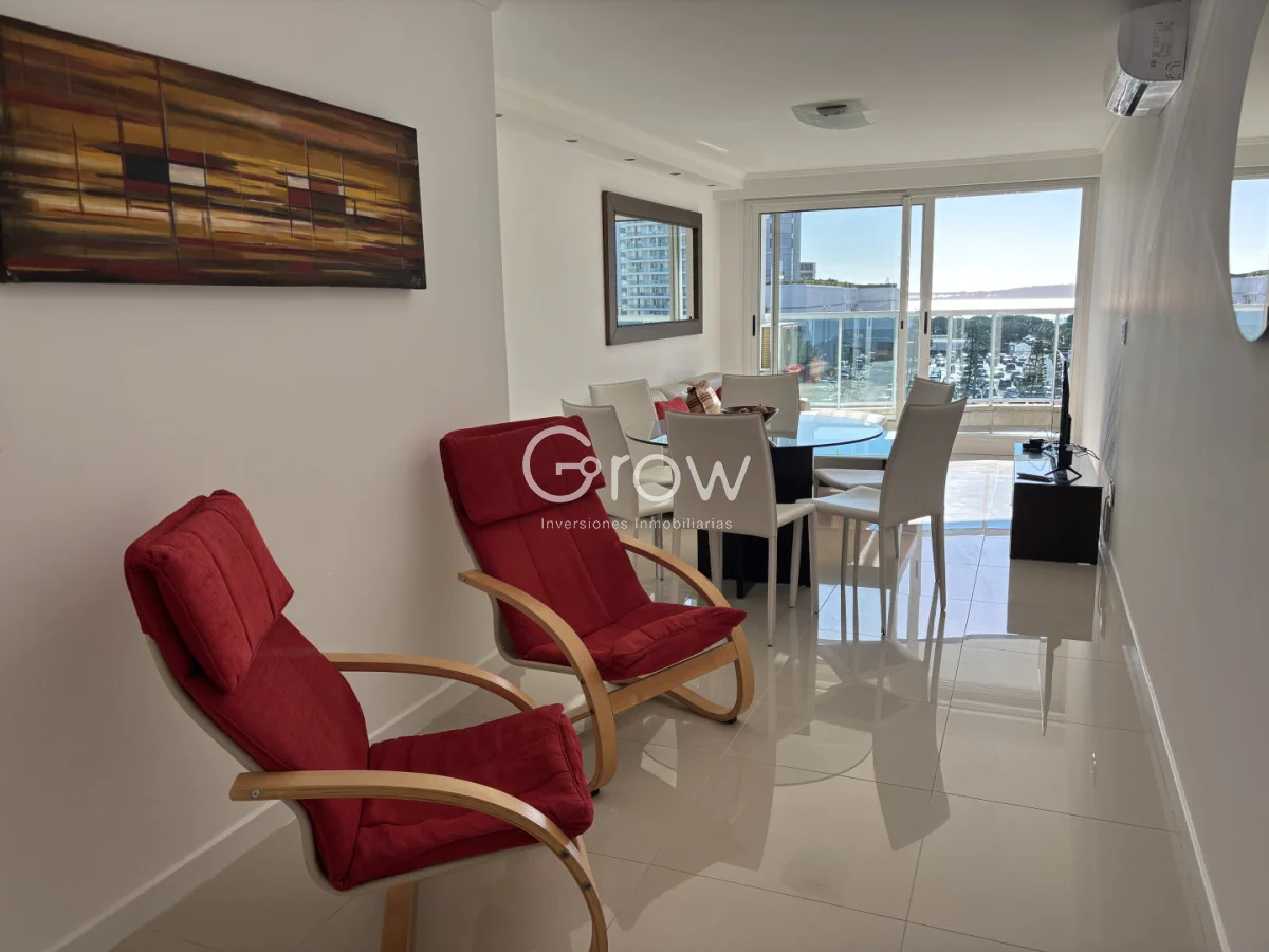 Ubicado a 250 metros del Mar, una de las zonas mas lindas para disfrutar Punta todo el año. Con orientación oeste, departamento al frente de la torre, con 2 suite, toilette, living comedor, cocina definida, balcón amplio con parrillero de uso exclusivo. Cochera para un auto.