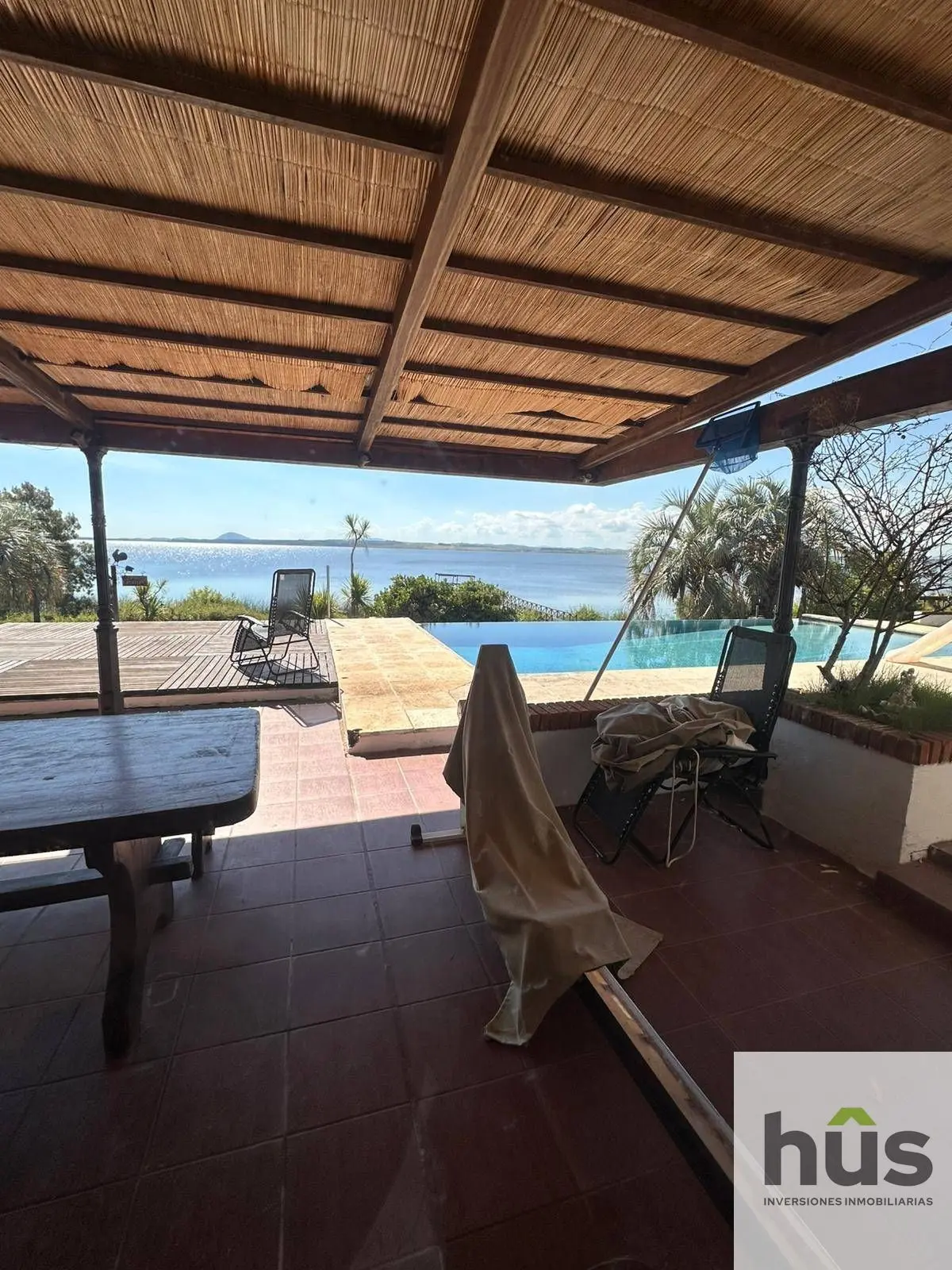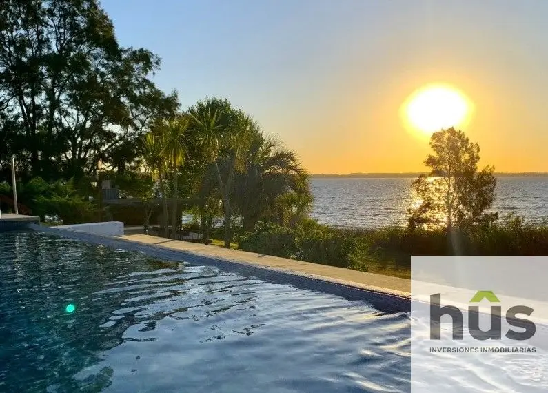 Parrillero y pérgola a orillas de la laguna con piscina \"borde infinito\", climatizada