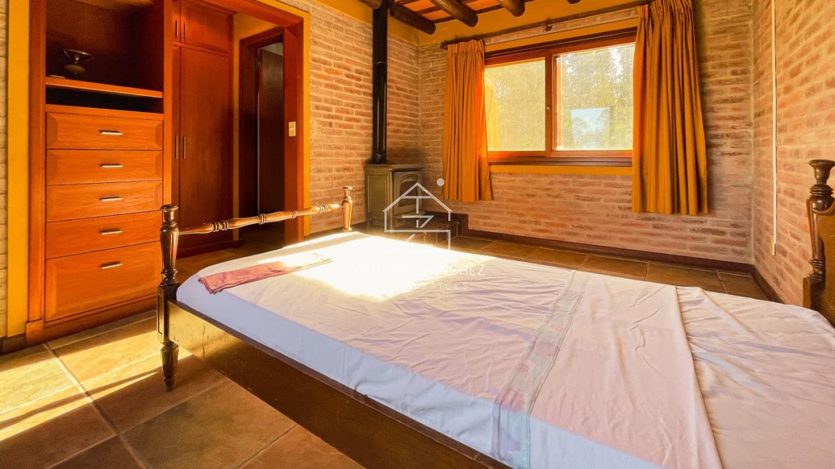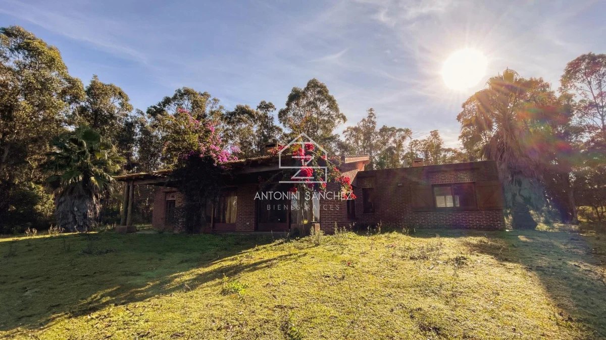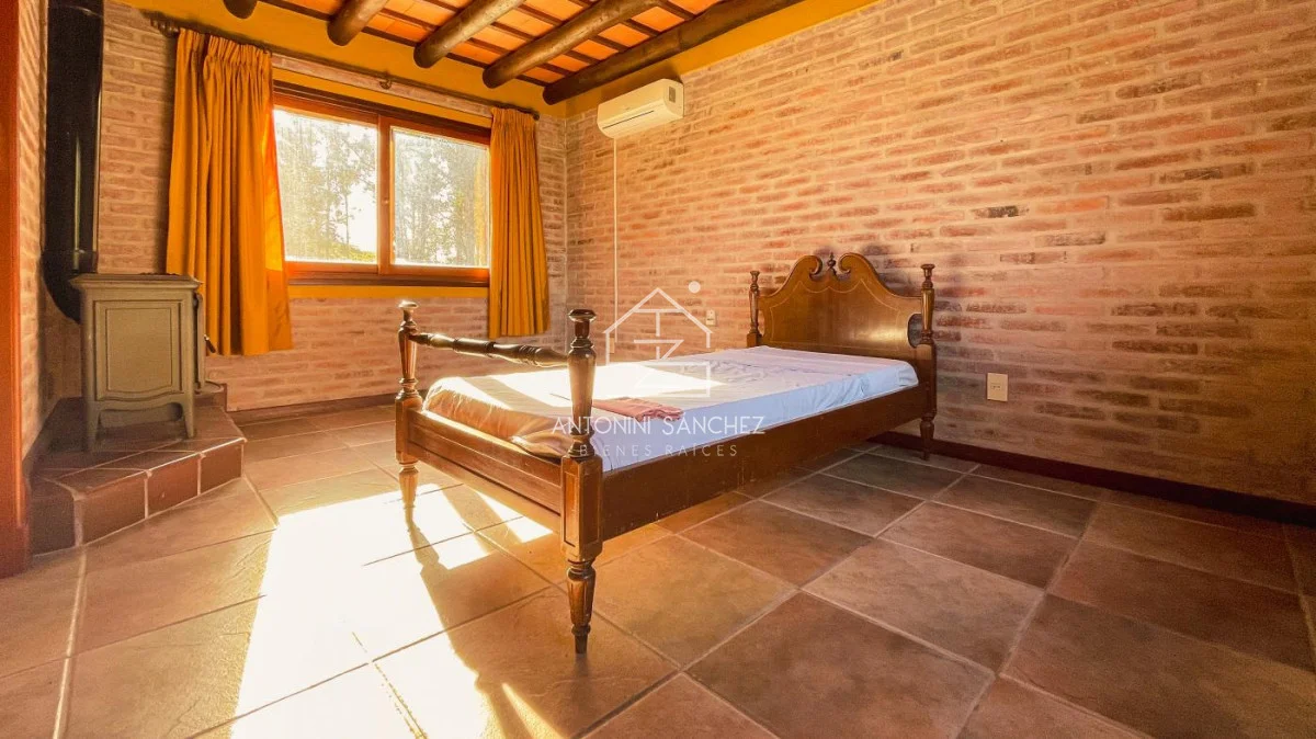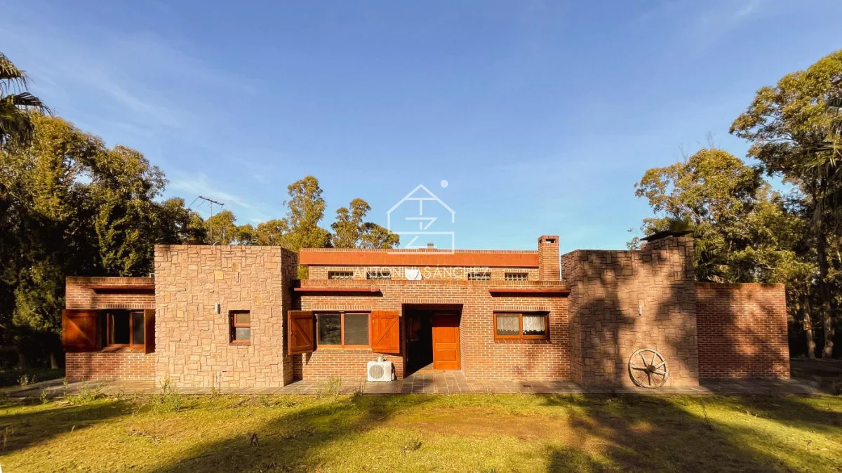 Chacra con casa de muy buena construcción y óptimo estado!. La construcción es de doble pared de ladrillo visto, techo de planchada con cielo raso de porteña y cámara de aislación con espuma plast de alta densidad. La casa cuenta con dos dormitorios, 2 baños (uno de ellos en suite con jacuzzi), cocina, comedor, living, barbacoa/garage, y galería con vistas a lago. La superficie de predio es de 5 hectáreas, el cuál en su mayoría está arbolado. Pozo con bomba de agua, caudal de 2000 lts/hr, y tanques con bomba presurizadora. Sistema de riego en jardín. Muy buen confort, zona en valorización.