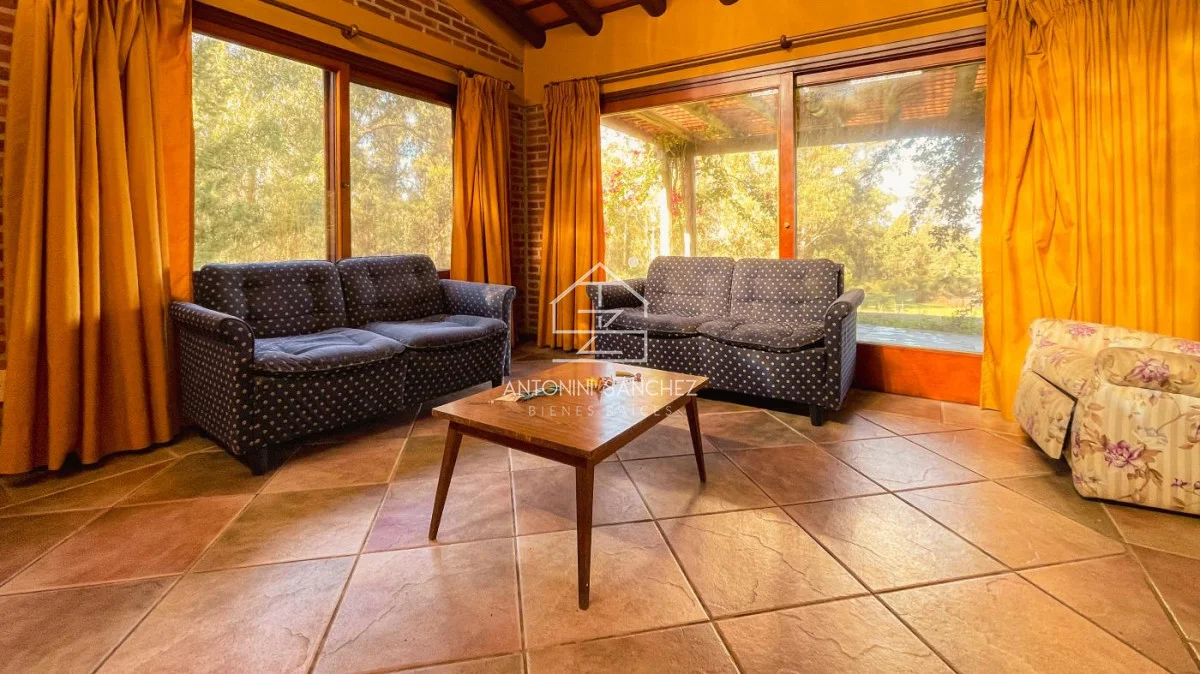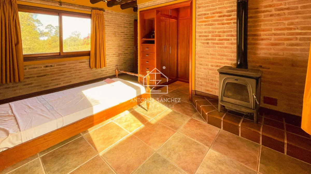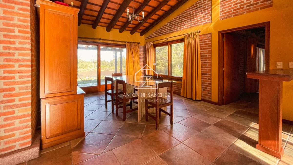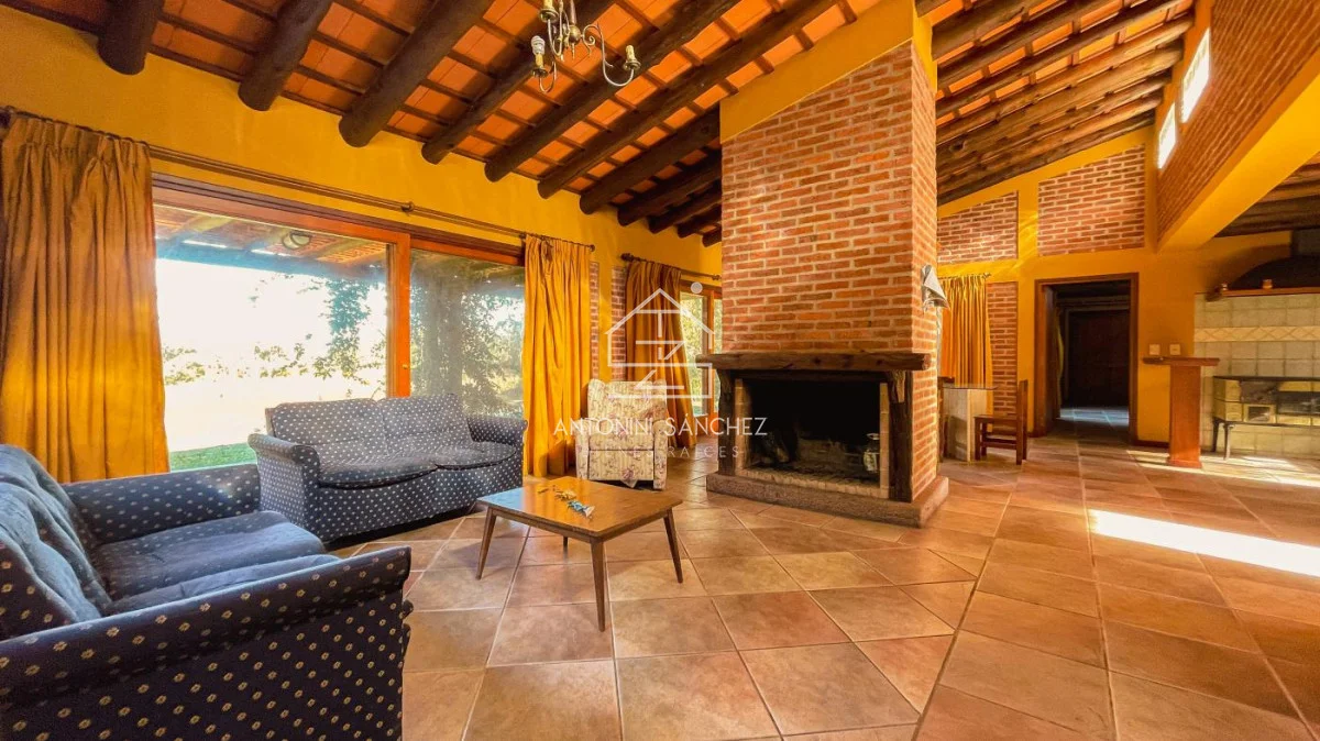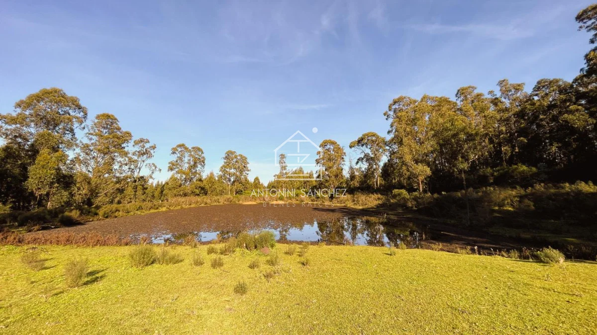 Chacra con casa de muy buena construcción y óptimo estado!. La construcción es de doble pared de ladrillo visto, techo de planchada con cielo raso de porteña y cámara de aislación con espuma plast de alta densidad. La casa cuenta con dos dormitorios, 2 baños (uno de ellos en suite con jacuzzi), cocina, comedor, living, barbacoa/garage, y galería con vistas a lago. La superficie de predio es de 5 hectáreas, el cuál en su mayoría está arbolado. Pozo con bomba de agua, caudal de 2000 lts/hr, y tanques con bomba presurizadora. Sistema de riego en jardín. Muy buen confort, zona en valorización.