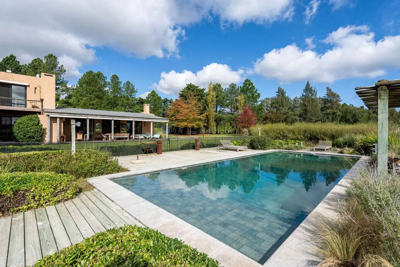 Lindísima chacra de 5.5 ha de superficie, en un ámbito totalmente privado y tranquilo. Cuenta con un gran parque diseñado paisajísticamente, se encuentra alambrada en su perímetro, está arbolada y perfectamente mantenida.