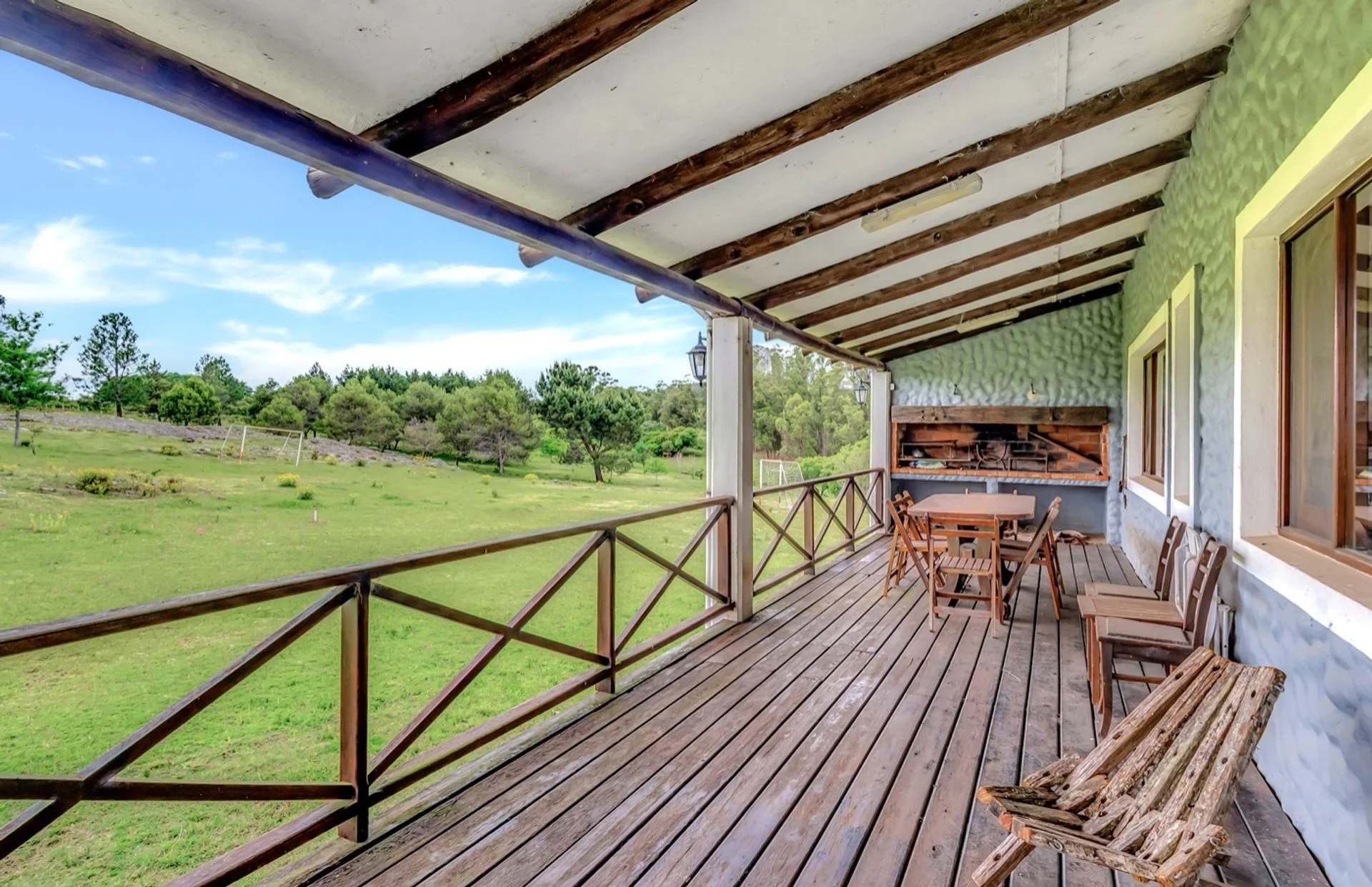 Corredor Responsable: - Contacto: Silvia Osano Venta de Chacra 3 DORMITORIOS en Pueblo Edén, Maldonado. Imperdible chacra, paz y mucha naturaleza. Cuenta con muy buen acceso, monte nativo y forestación, pequeña cañada natural, tajamar, casa de casero, galpón caballerizas y una amplia casa para disfrutar todo el año. Living comedor con estufa a leña y cocina integrada, dormitorio principal en suite y dos dormitorios que comparten un baño, la galería con vista al oeste con Puestas del sol únicas! Entorno muy bien cuidado con riego en toda la chacra y en cada pino específicamente. Importante piscina con bomba de calor. A/C en todos los ambientes. Gas por Cañería. Pozo de Agua. Tanque Australiano. 8 hectáreas y 2800m2 Huerta la cual tiene todos los frutales en producción (Naranjos, limoneros, ciruelos, durazneros, manzano, Perales, membrillo, higuera, Araza, guabiyu, guayabo del país) Posibilidad de tomar alguna propiedad en parte de pago. Opción ideal para vacacionar o vivir todo el año. ***Contamos con Video!! envíame Whatsapp y te lo envío.*** *Compartimos con todos nuestros Colegas* Cada Oficina es de propiedad, gestión y desarrollo independiente La presente publicación describe las características esenciales del inmueble, debiéndose consultar al responsable de la operación por la eventual actualización de las medidas, descripciones arquitectónicas y funcionales, servicios, impuestos, precios y demás información, cuyos valores son aproximados.
