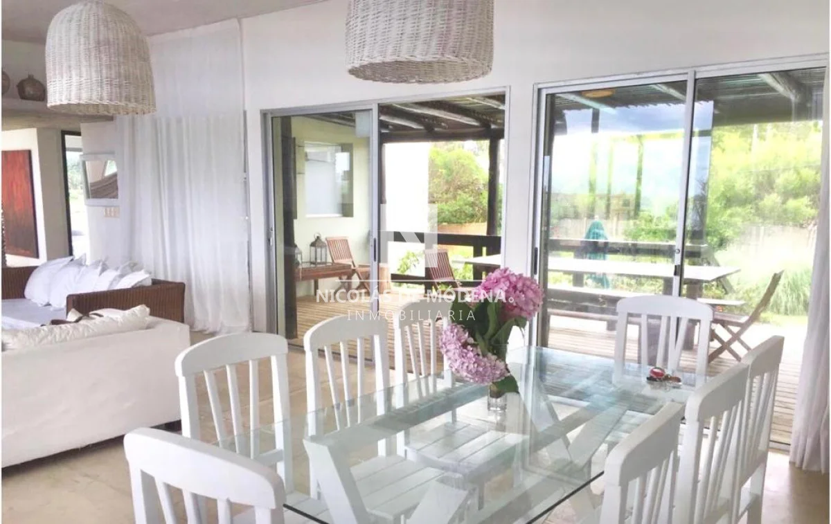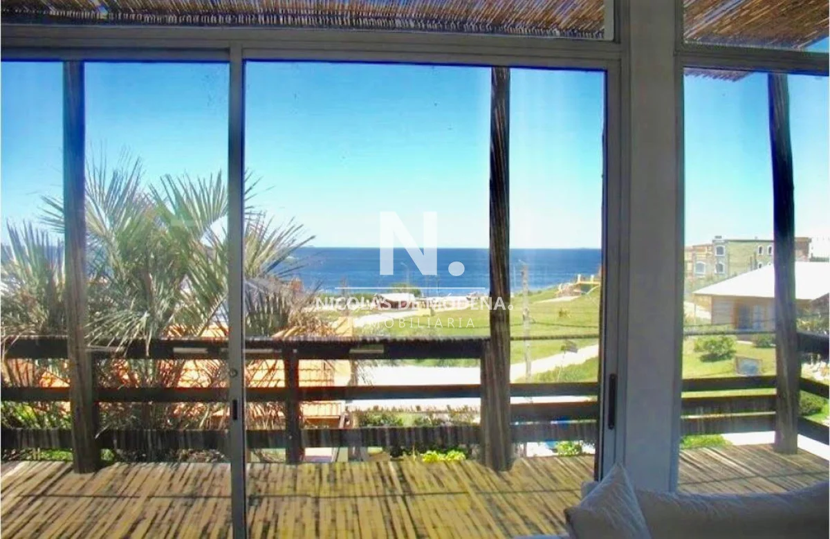Planta alta: amplio y luminoso living y comedor con vistas al mar y terraza al fondo con parrillero, Cocina, dormitorio principal en suite.
