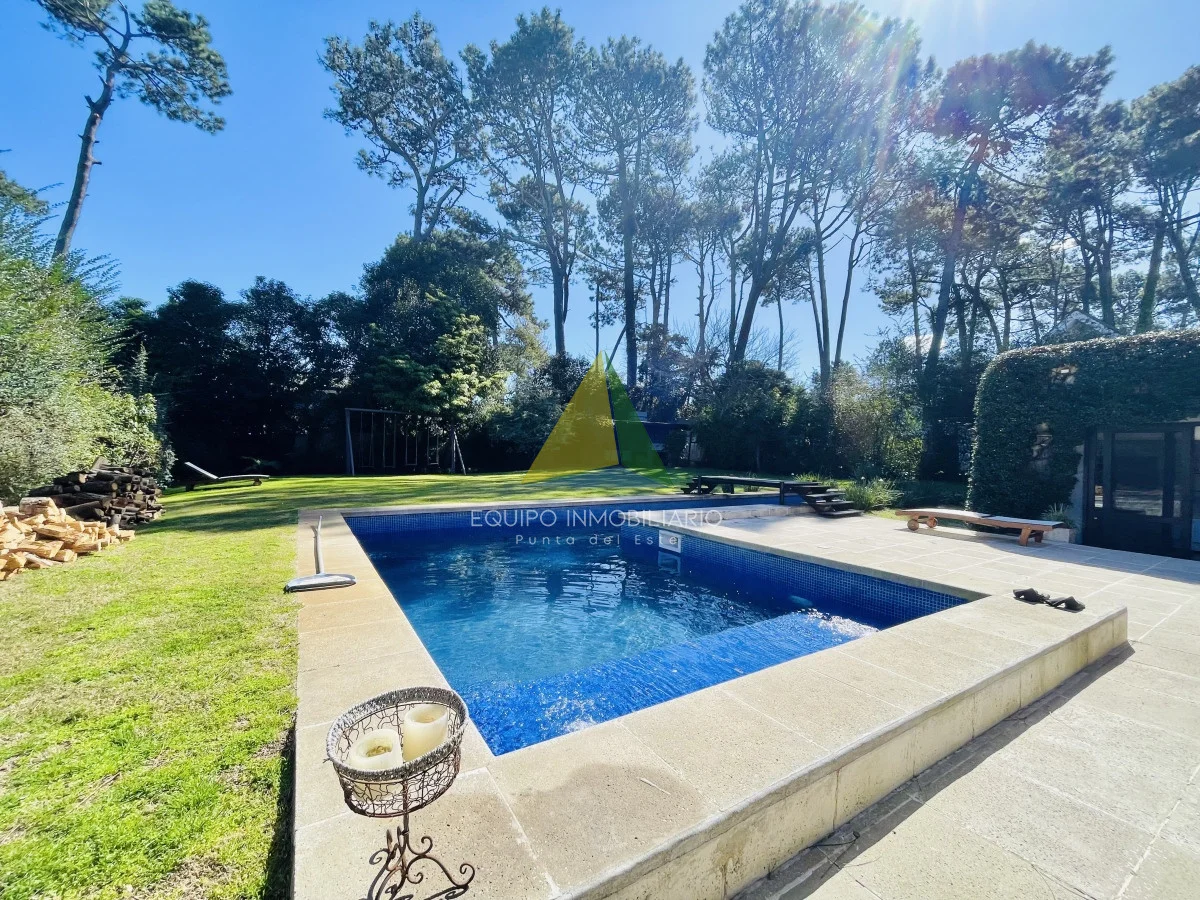 La casa se encuentra rodeada de un hermoso jardín verde, totalmente cercado. Cuenta con parrillero techado y gran piscina exterior climatizada.