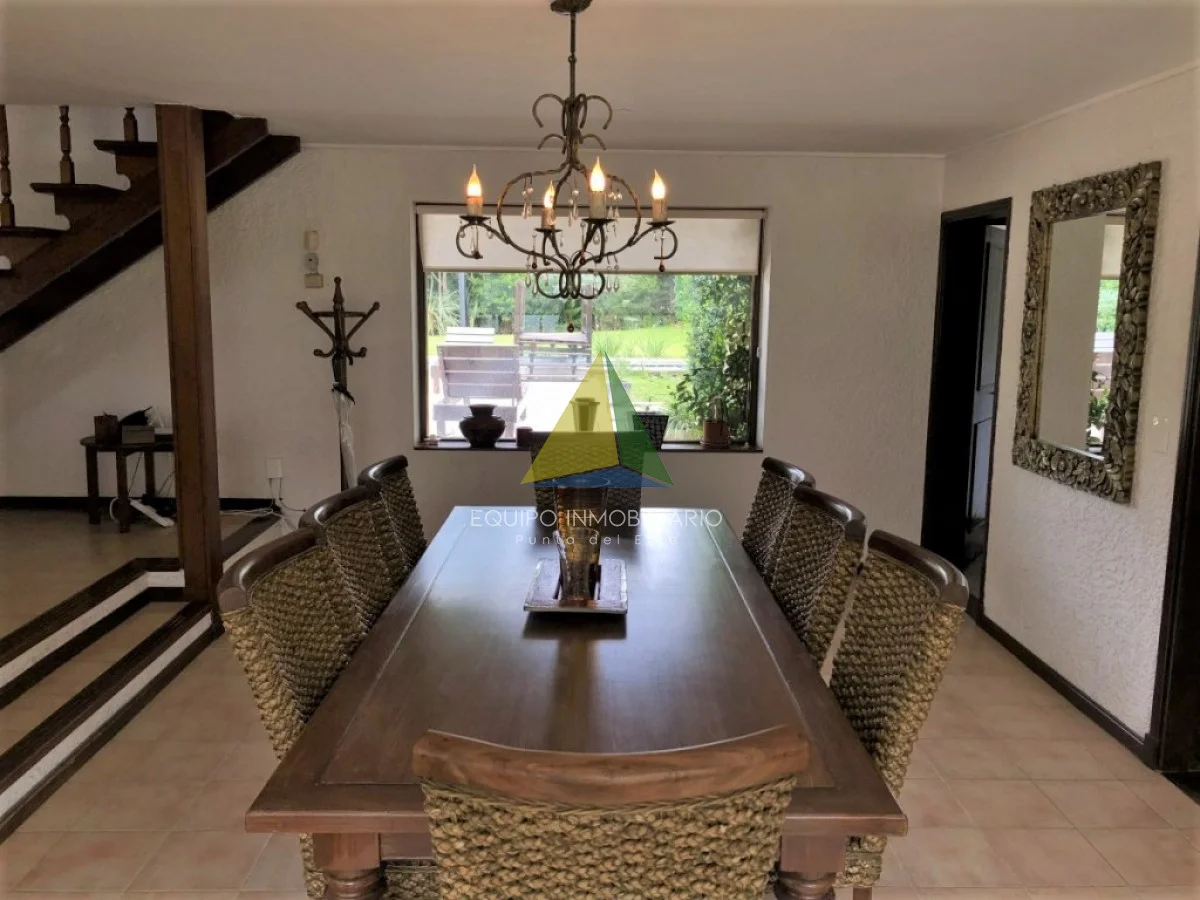 Cuenta con amplio living comedor con hogar a leña y ventanales que proporcionan una iluminación natural espectacular, con vistas a la calle y el verde jardín. Espaciosa cocina definida, bien equipada.