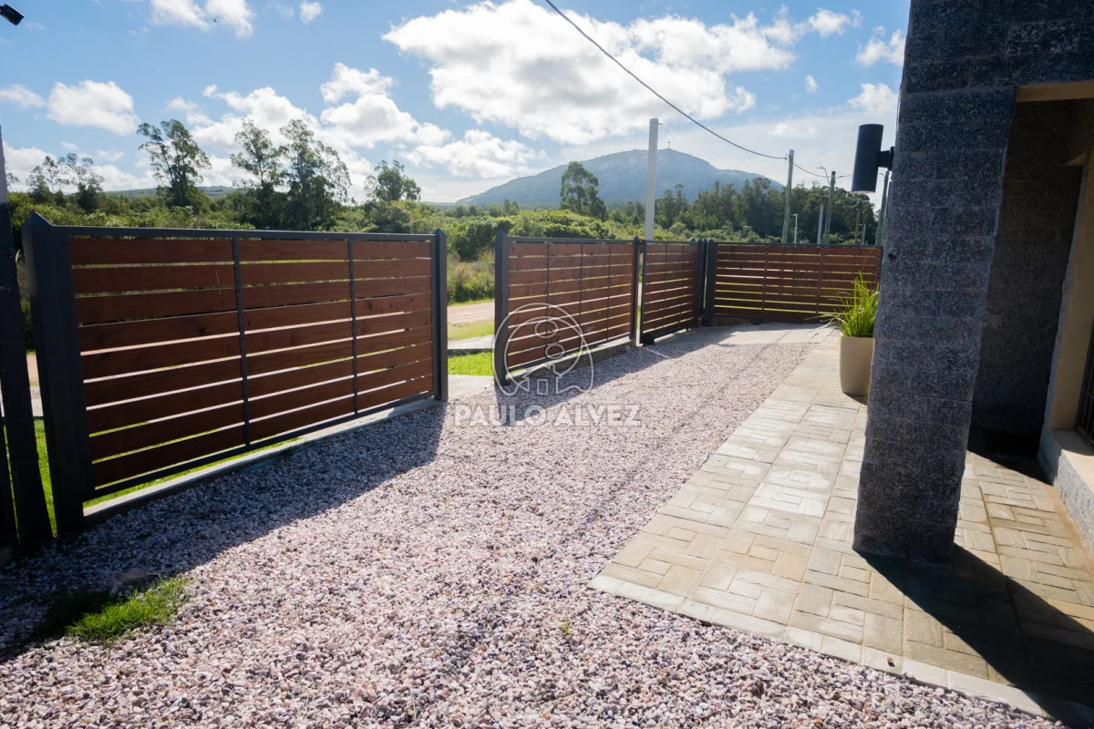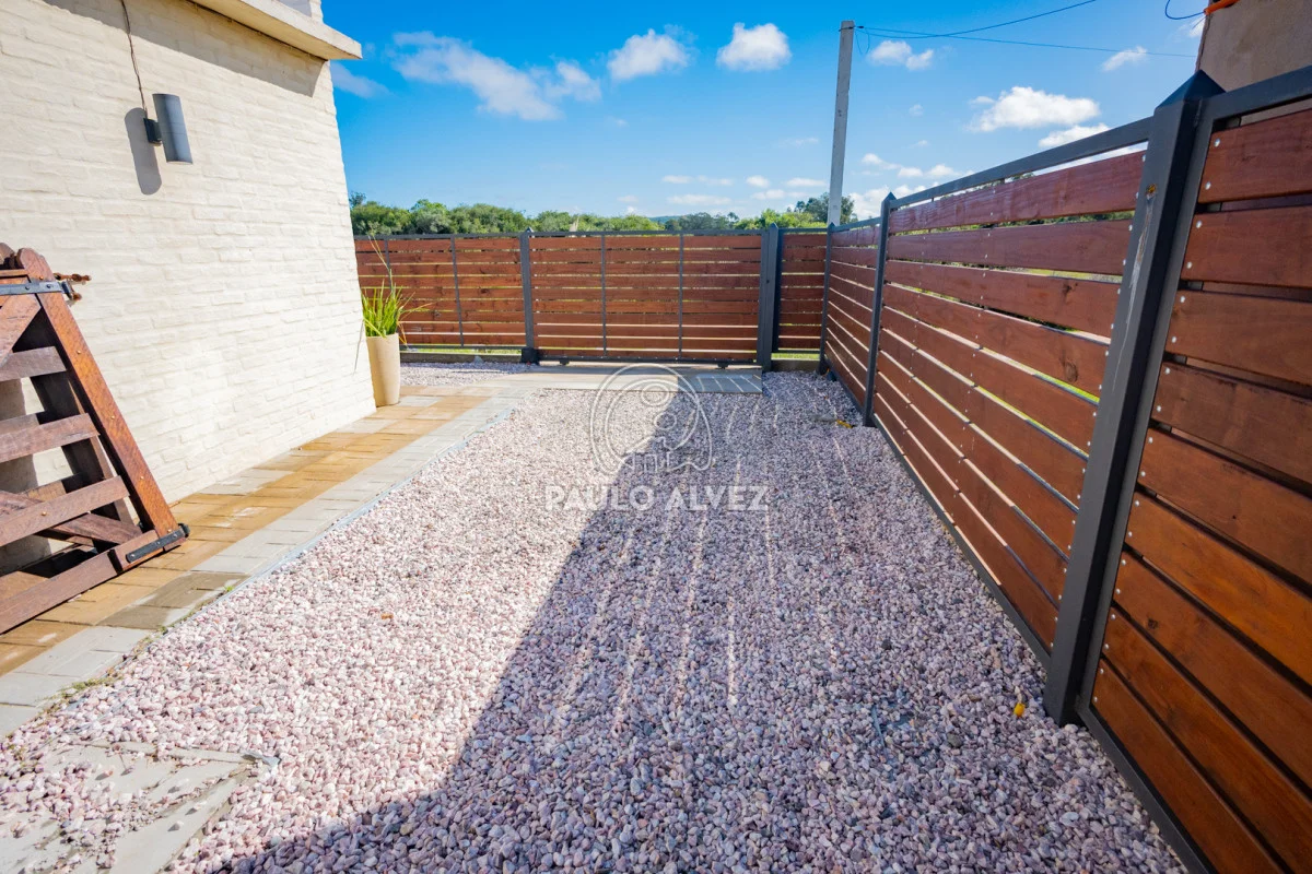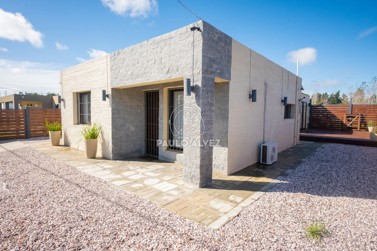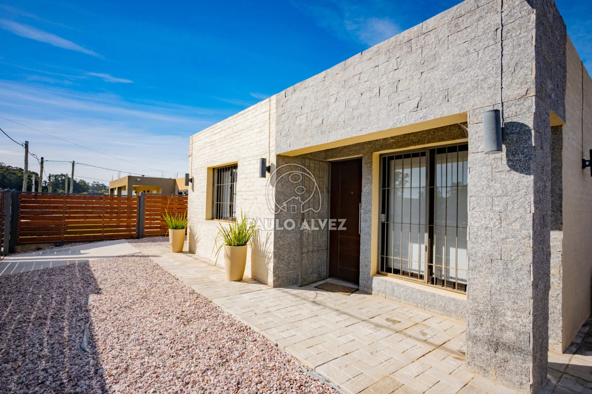 Casa a estrenar, ubicada en Barrio Tierra Calma, zona tranquilo y en pleno crecimiento, rodeado de naturaleza entre los cerros y el mar. Ideal para quienes valoran la paz y la cercanía a todo. Ubicada en un predio esquina de 303 m², cuenta con 90m² de construcción tradicional; doble pared de ladrillo, techo de losa y pisos en porcelanato. Ambientes luminosos y funcionales: acogedor living-comedor con cocina integrada, equipada con muebles bajo y sobre mesada. Dos dormitorios y un baño completo. En el exterior, parrillero cubierto y piscina climatizada, el lugar perfecto para relajarse y disfrutar al aire libre. Importante oportunidad. Consúltanos para coordinar tu visita.