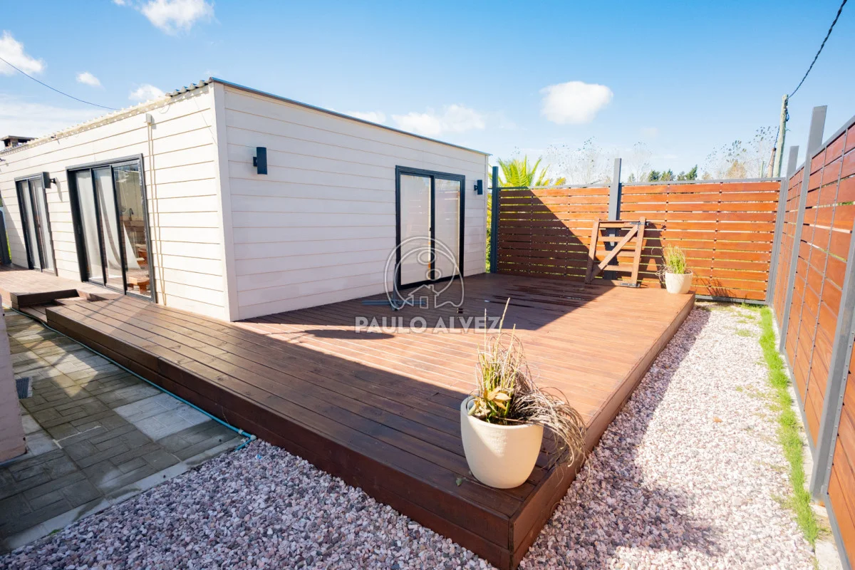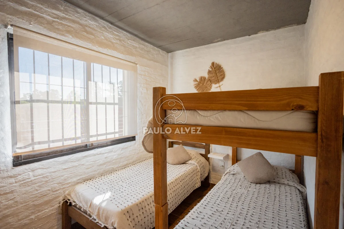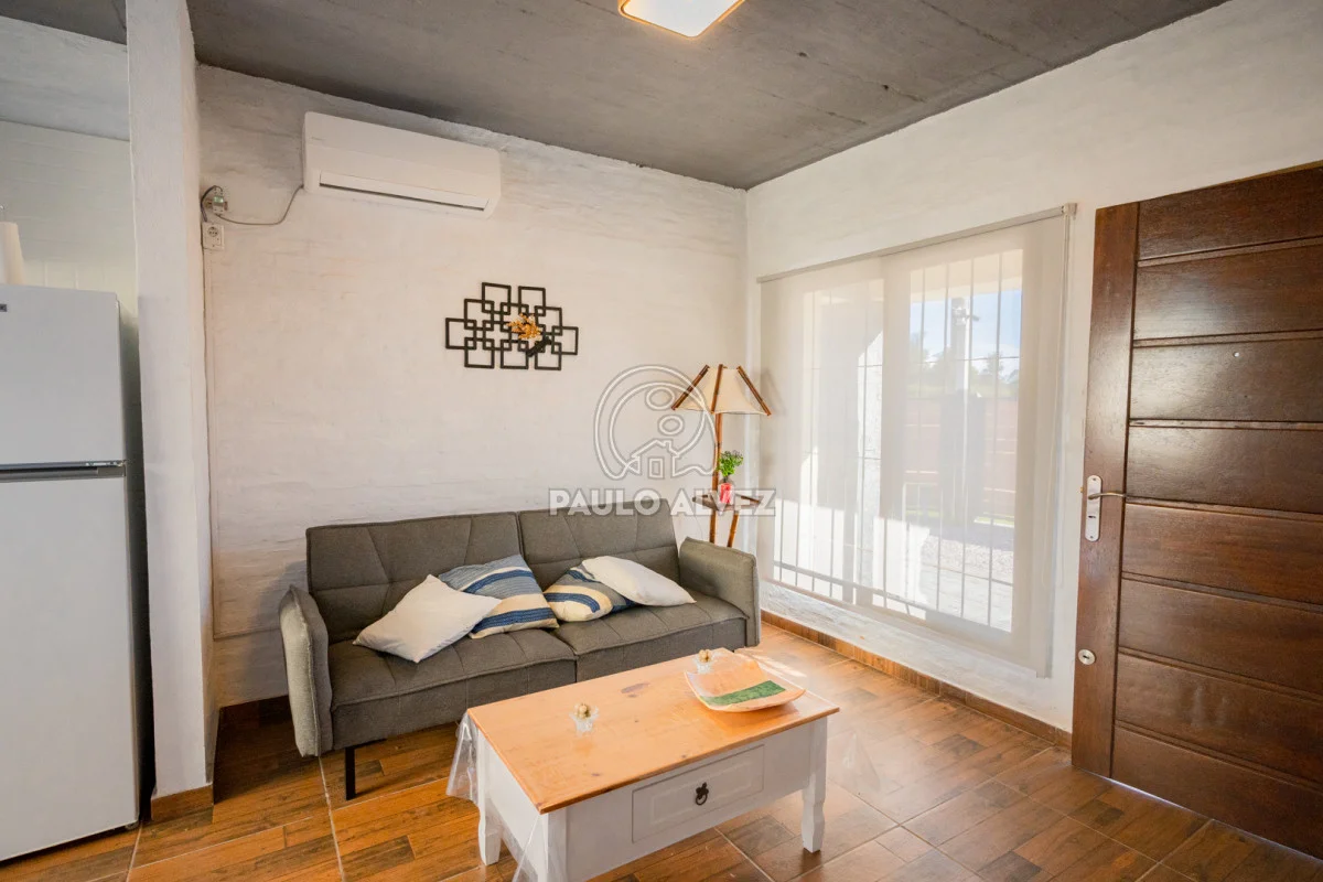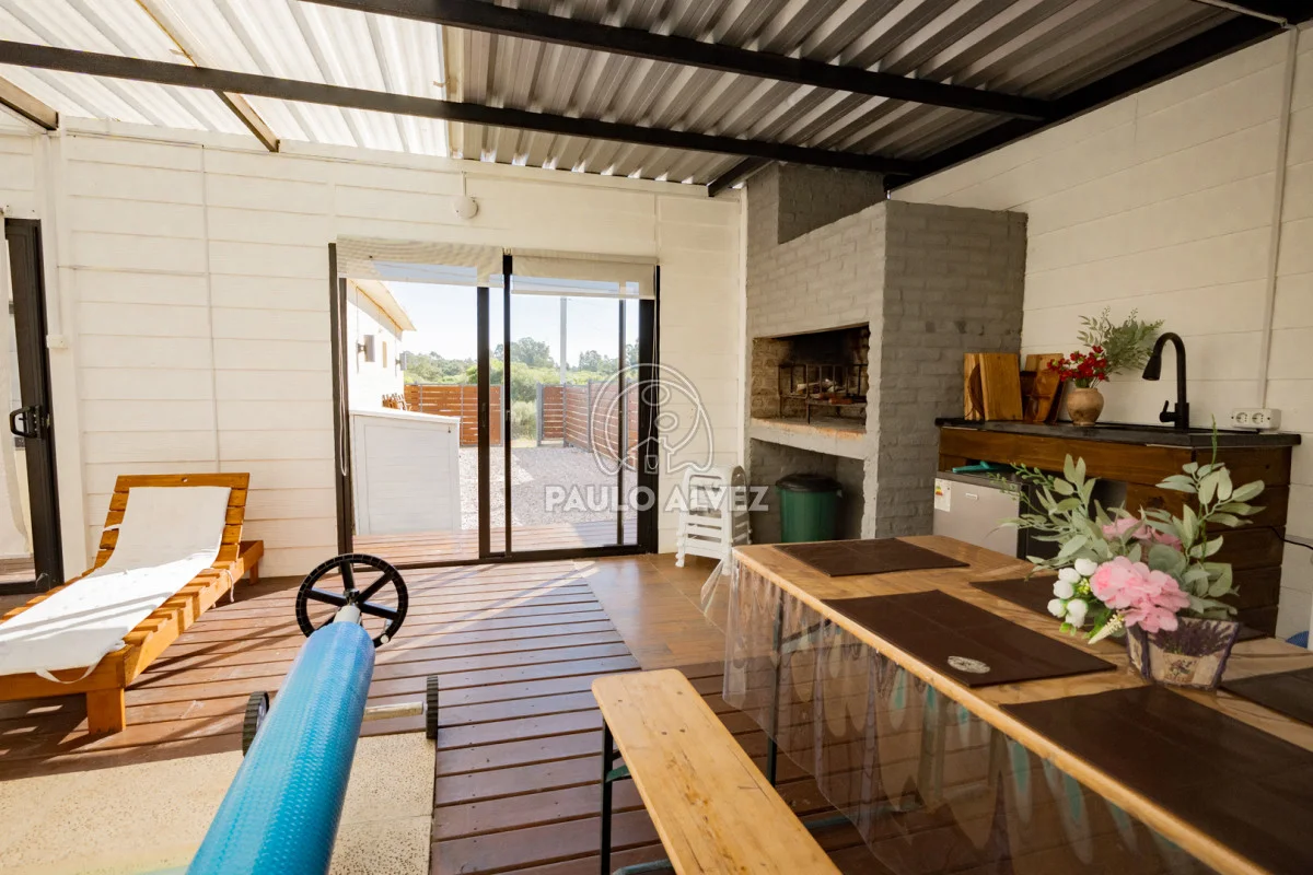 Casa a estrenar, ubicada en Barrio Tierra Calma, zona tranquilo y en pleno crecimiento, rodeado de naturaleza entre los cerros y el mar. Ideal para quienes valoran la paz y la cercanía a todo. Ubicada en un predio esquina de 303 m², cuenta con 90m² de construcción tradicional; doble pared de ladrillo, techo de losa y pisos en porcelanato. Ambientes luminosos y funcionales: acogedor living-comedor con cocina integrada, equipada con muebles bajo y sobre mesada. Dos dormitorios y un baño completo. En el exterior, parrillero cubierto y piscina climatizada, el lugar perfecto para relajarse y disfrutar al aire libre. Importante oportunidad. Consúltanos para coordinar tu visita.