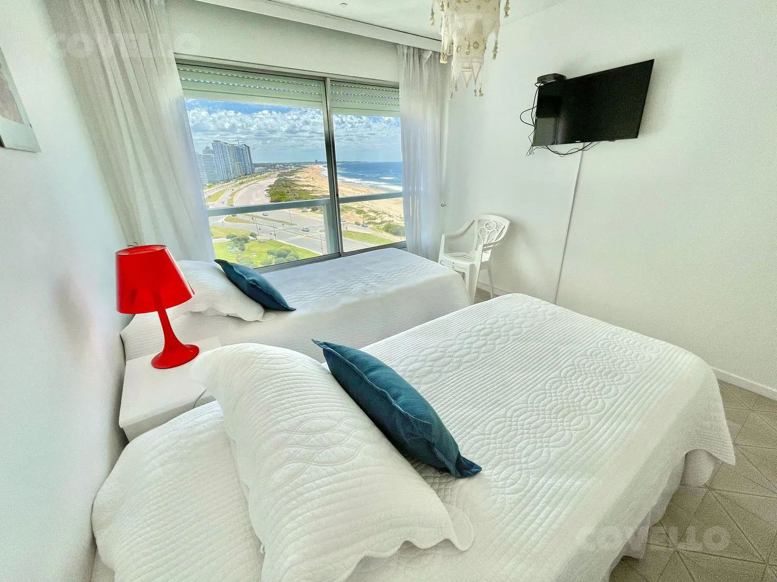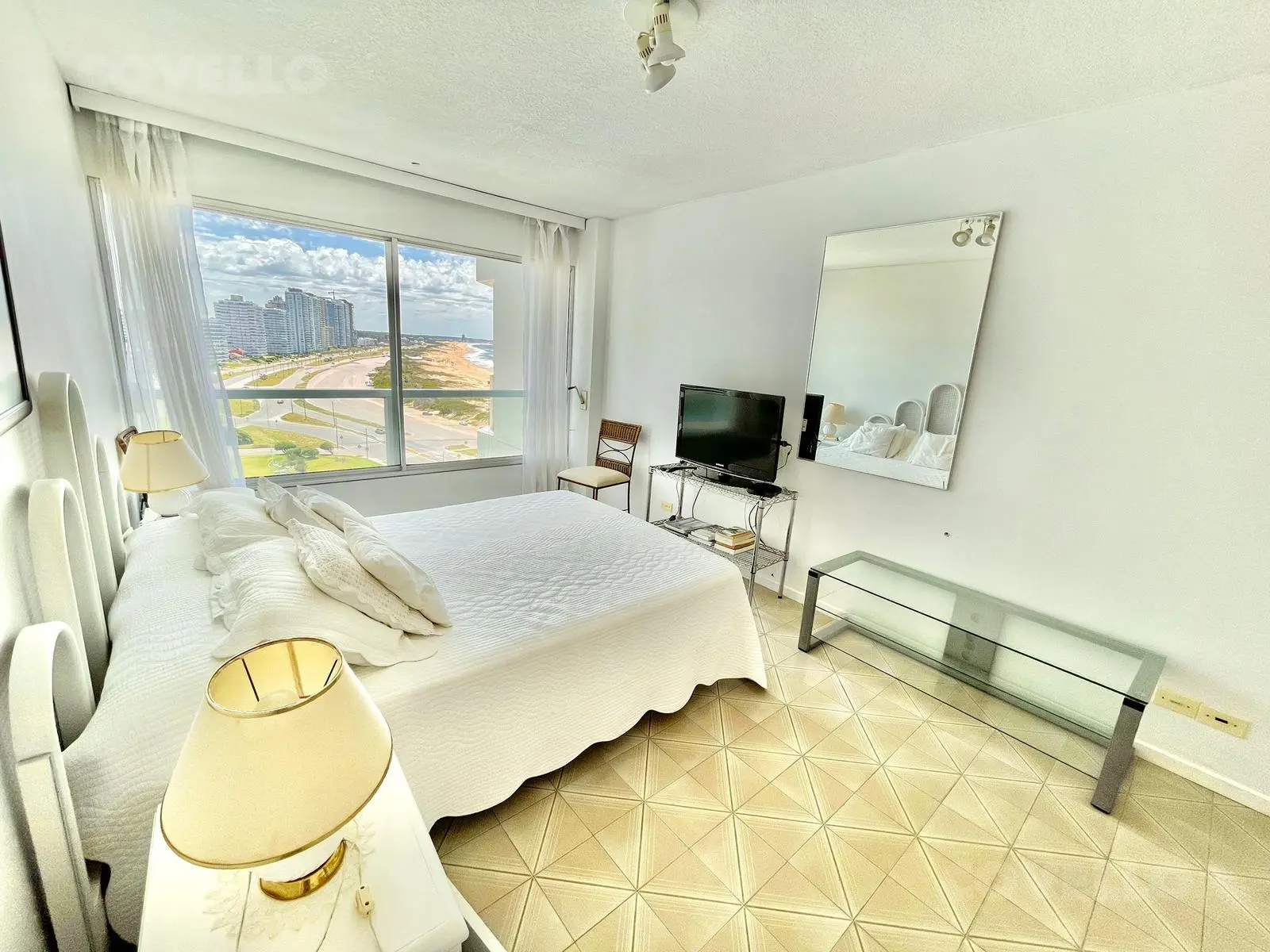 Excelente departamento en Playa Brava, a pasos del agua. Cuenta con dos dormitorios, uno de ellos en suite. Amplio living comedor y balcón. Todos los ambientes con increíble vista. Los amenities incluyen gimnasio, piscina abierta y cerrada, sala de masajes, sauna, sector de juegos.