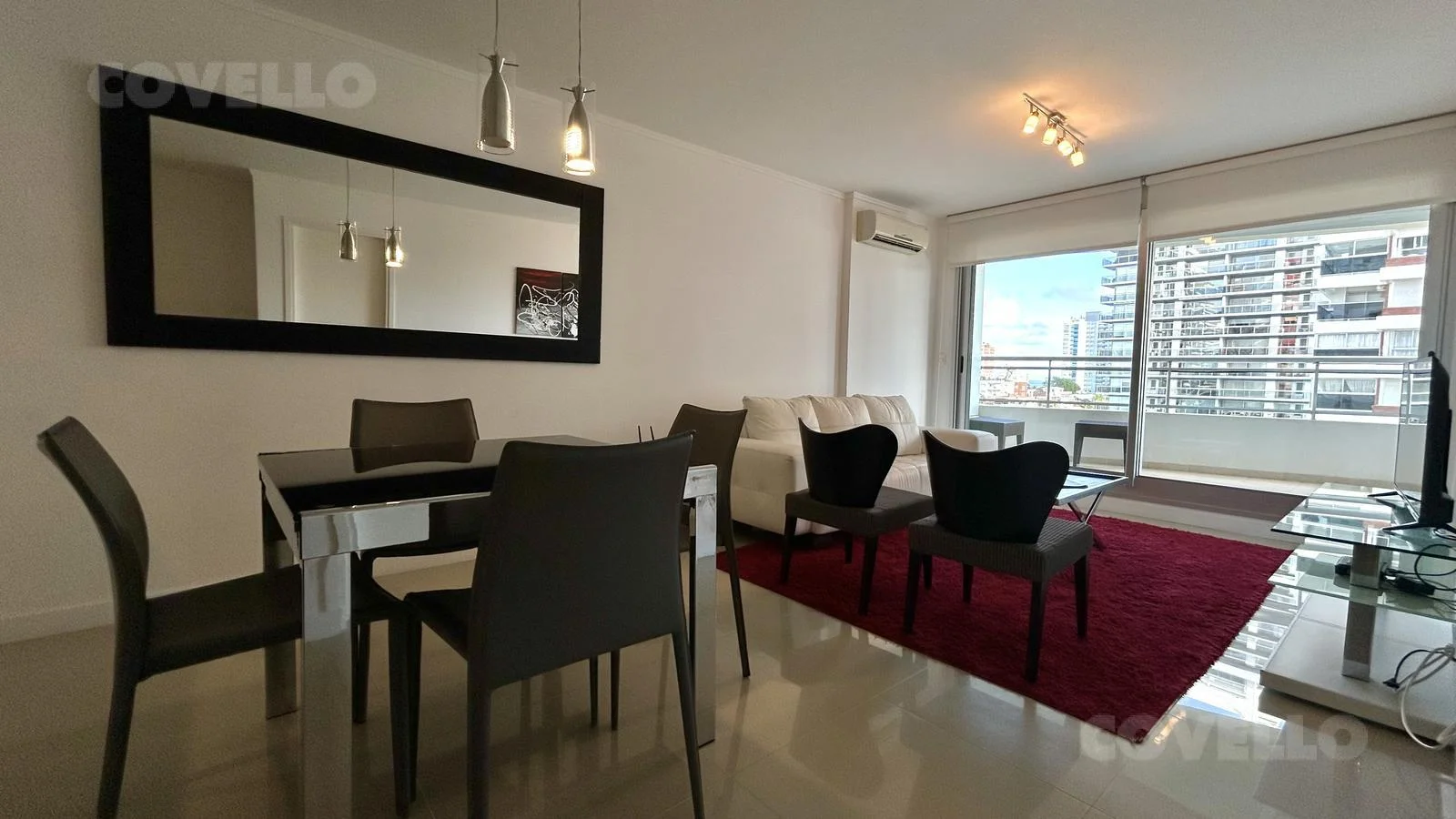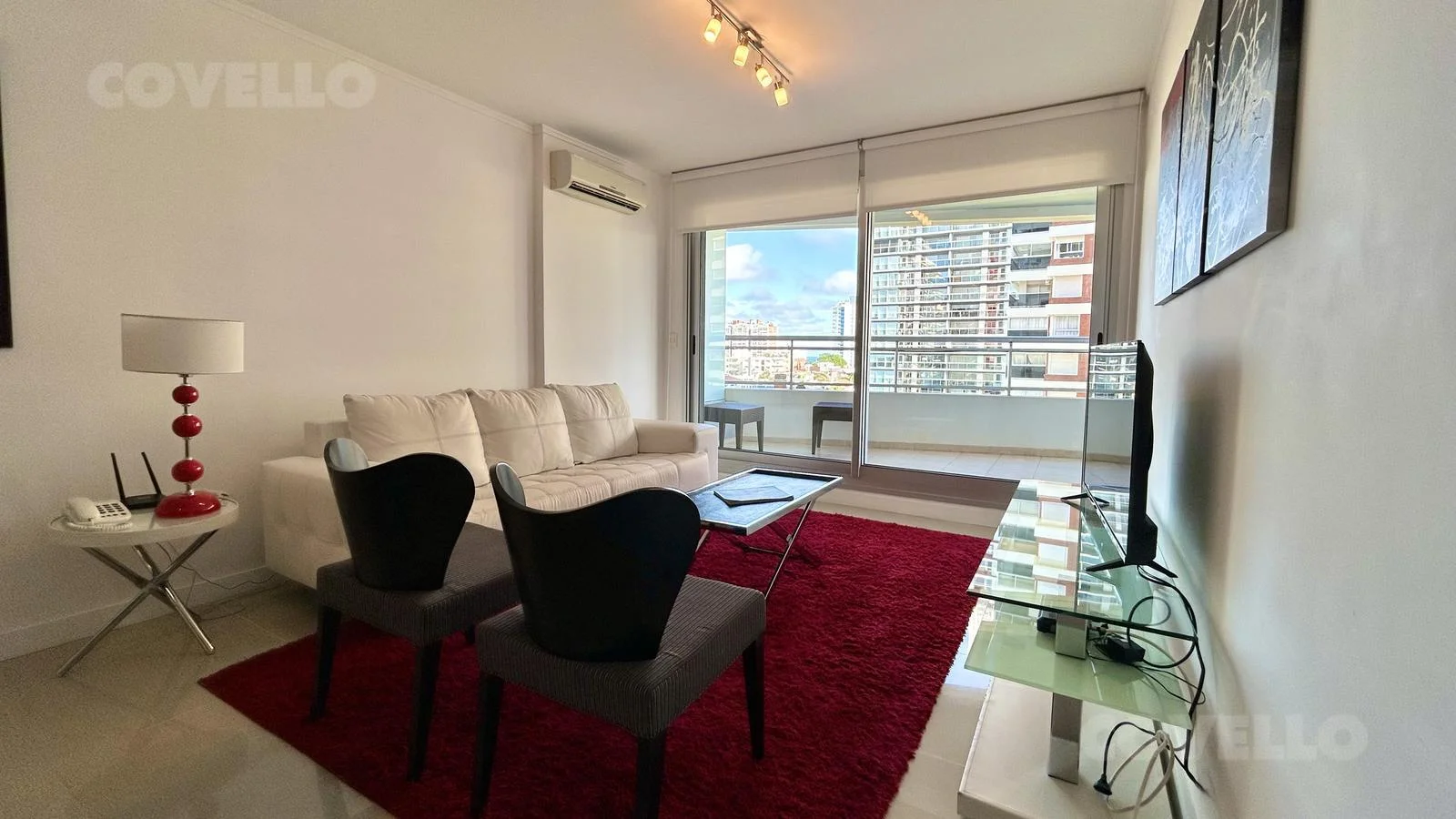 Living comedor, cocina integrada y balcón con muy buena vista.