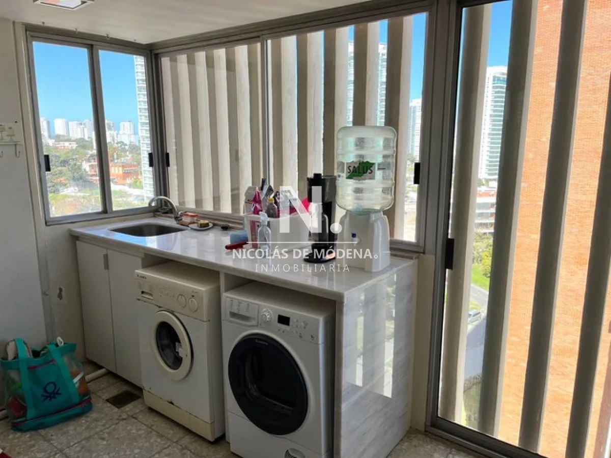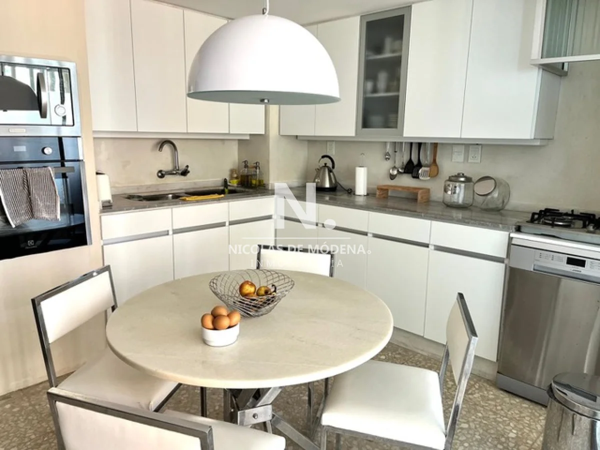 Amplia cocina definida con desayunador. Bien equipada: Anafe - Microondas - Lavarropas - Lavavajilla - 2 Heladeras Con Freezer - Campana - Horno y placard, ademas de un amplio y cómodo. Terraza lavadero con parrillero.