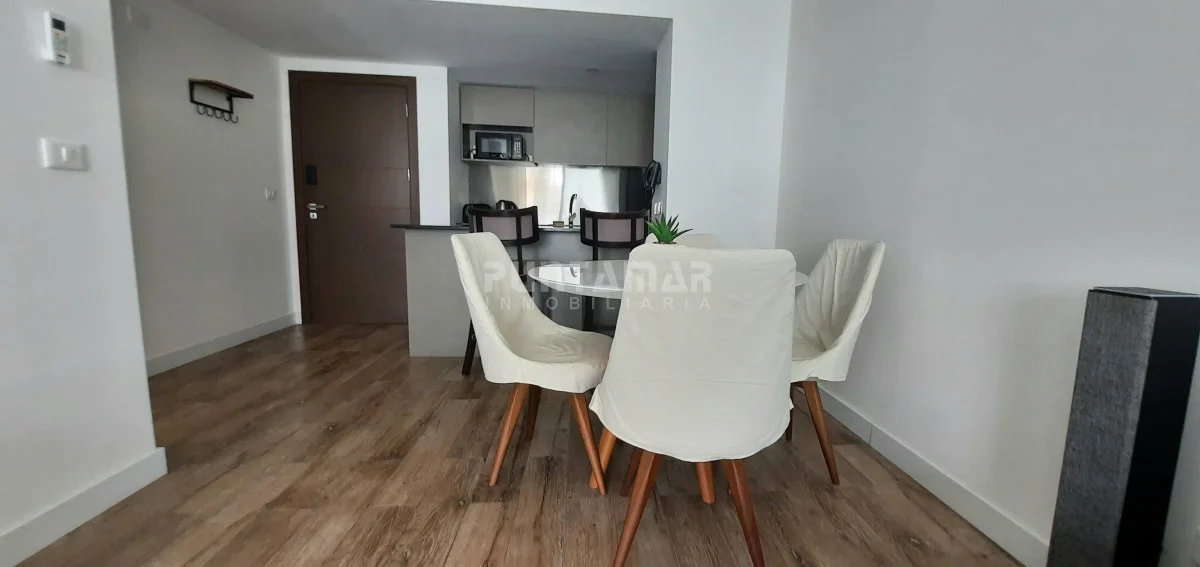 Ubicado a pasos del mar, en el centro de la península. Cuenta con living comedor con salida directa al balcón. La cocina con barra está integrada a la sala, Tiene 1 dormitorio, con salida al balcón también y un baño completo. El Edificio tiene piscina, parrilleros, gimnasio y sala de juegos. Referencia Interna : Tera-213569