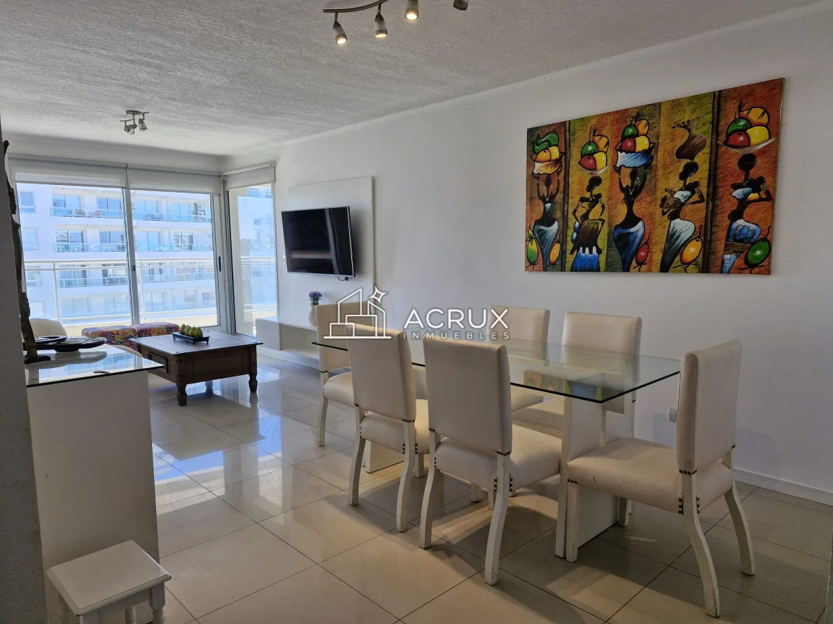 Amplio living comedor con cómoda terraza para disfrutar al aire libre con parrillero, dando la oportunidad de vivir Punta del Este al máximo.