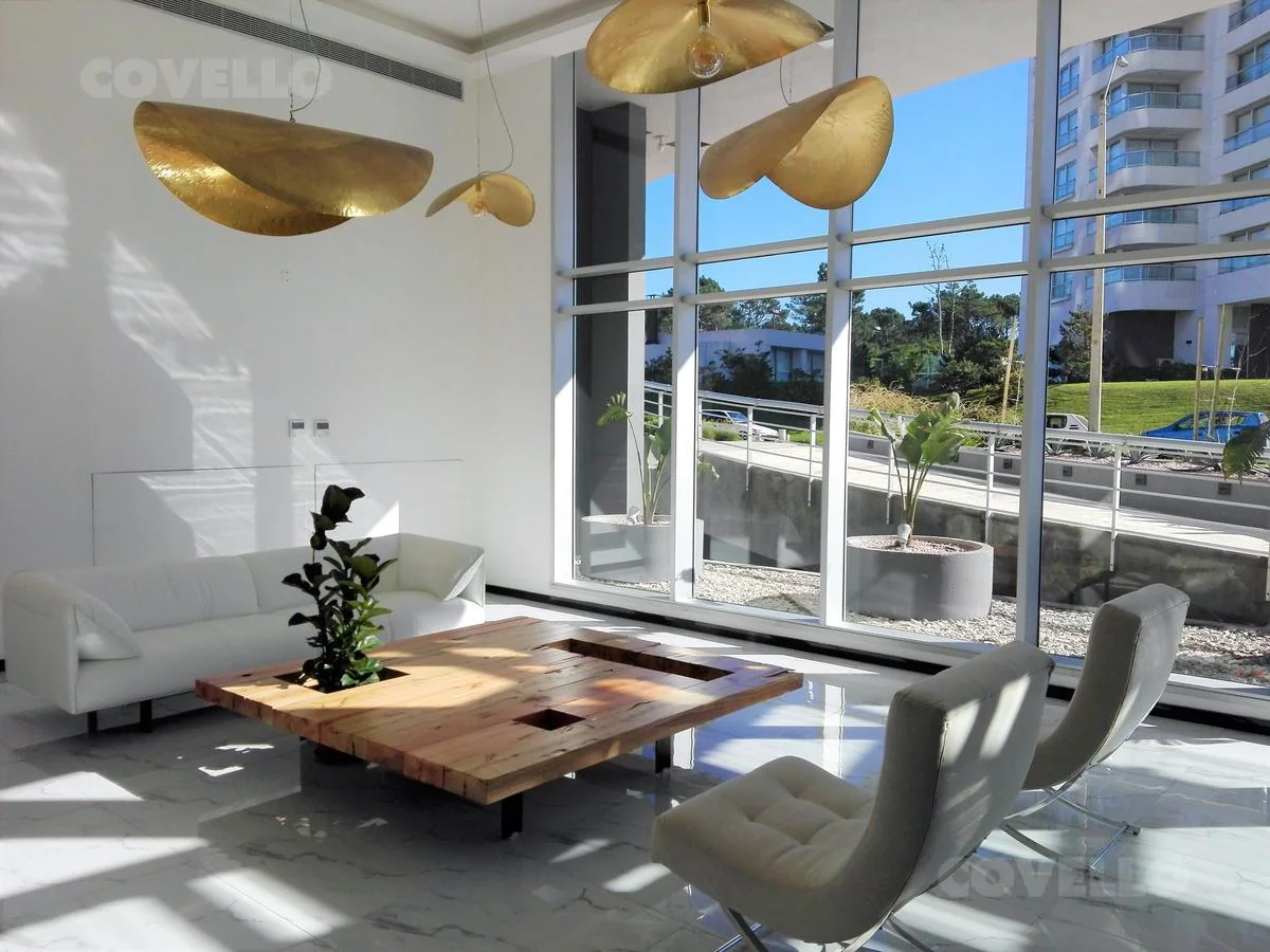 Dormitorio principal en suite con baño completo y vestidor con salida a balcón terraza con vista al mar. Segundo dormitorio en suite con bano completo con salida a balcón terraza con vista al bosque. Amplio Living comedor con balcón terraza. Cocina con comedor diario con lavadero y vista al balcón. Toilette. Parrillero individual. Palier Semi privado. Cochera.