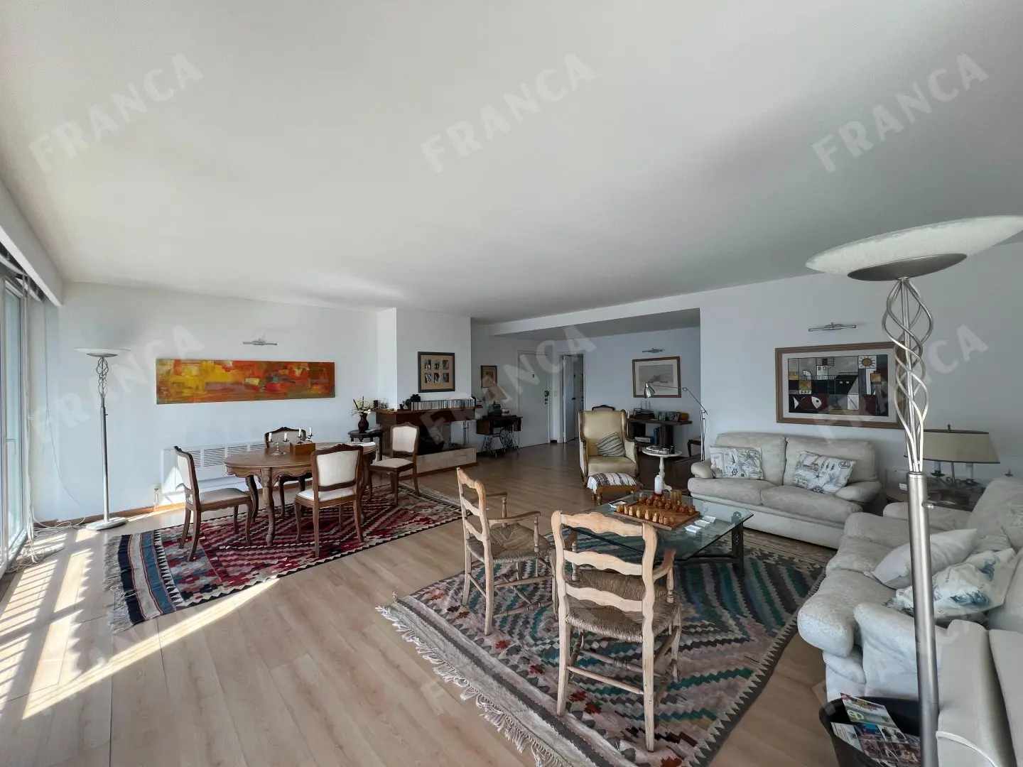 Amplio living comedor con estufa a leña y calefactores muy eficientes.