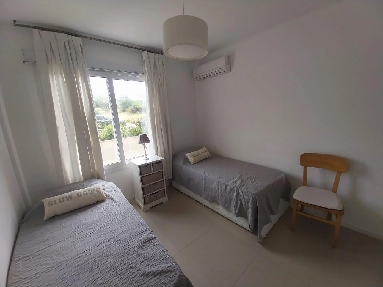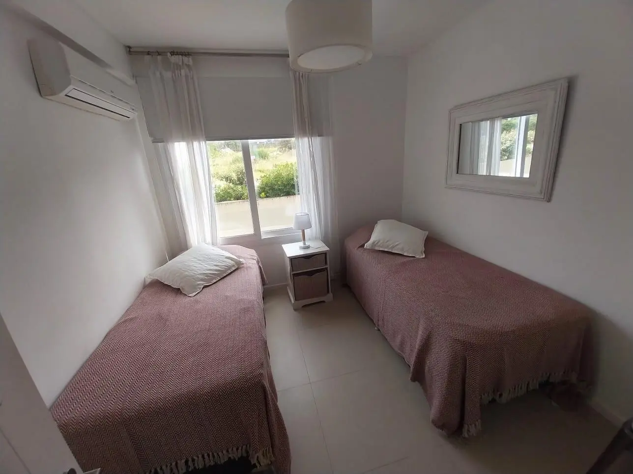 Departamento en Alquiler Temporario en Palcos de Montoya. Vista al mar. Cuenta con tres dormitorios, principal en suite, baño y dependencia con baño.