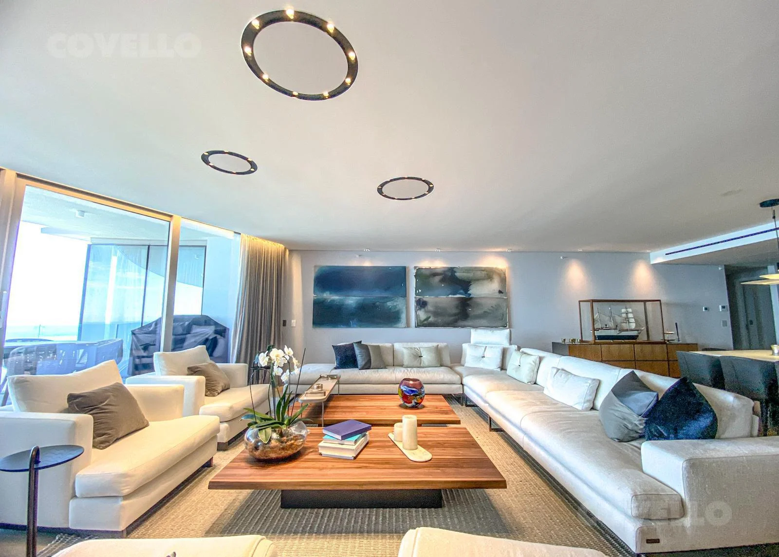 Este moderno departamento cuenta con dos unidades unificadas, es decir, consta de 4 dormitorios más dependencia, ofreciendo impresionantes vistas al mar desde su amplio y luminoso living comedor.