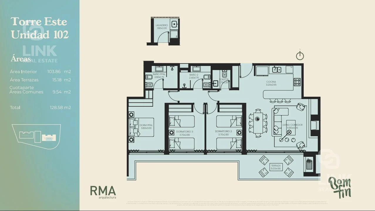 Amplio y muy luminoso departamento de 3 dormitorios, uno en suite, con living-comedor integrado y salida a una generosa terraza con parrillero propio. Cuenta además toilette y 2 cocheras. Su excelente calidad constructiva, sumada a las aberturas con doble vidrio hermético (DVH) y la losa radiante sectorizada, garantizan confort durante todo el año. Ubicado en una de las zonas de mayor crecimiento y proyección, en pleno auge.