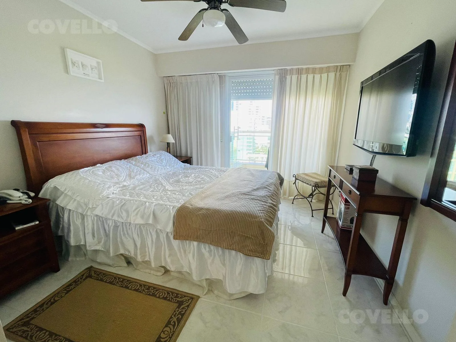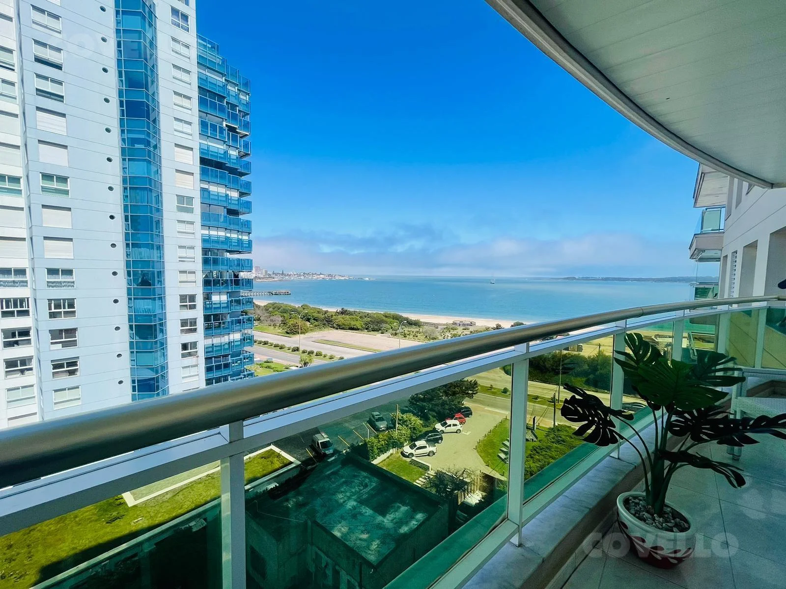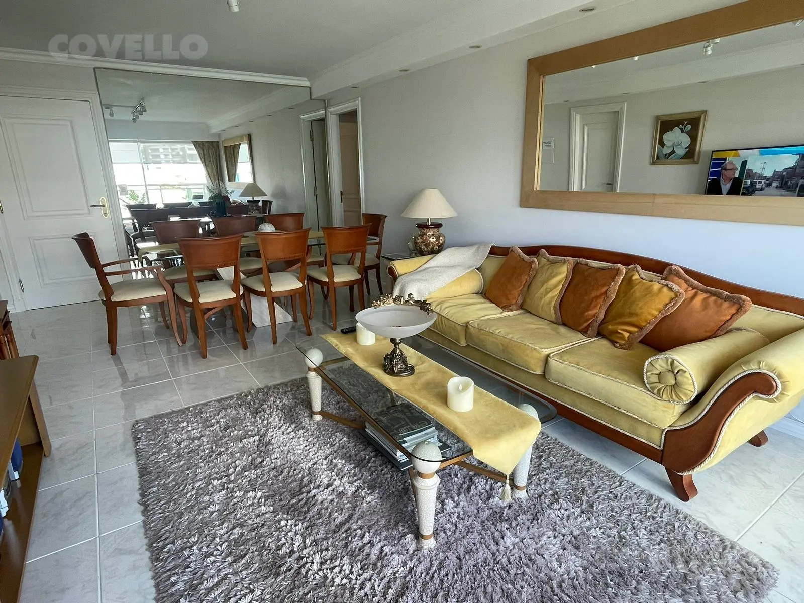 Departamento de 3 dormitorios (1 en suite) frente al mar, en emblemático edificio de Punta del Este. Amplio living-comedor con salida a terraza y vista directa al mar, cocina definida y 2 baños.