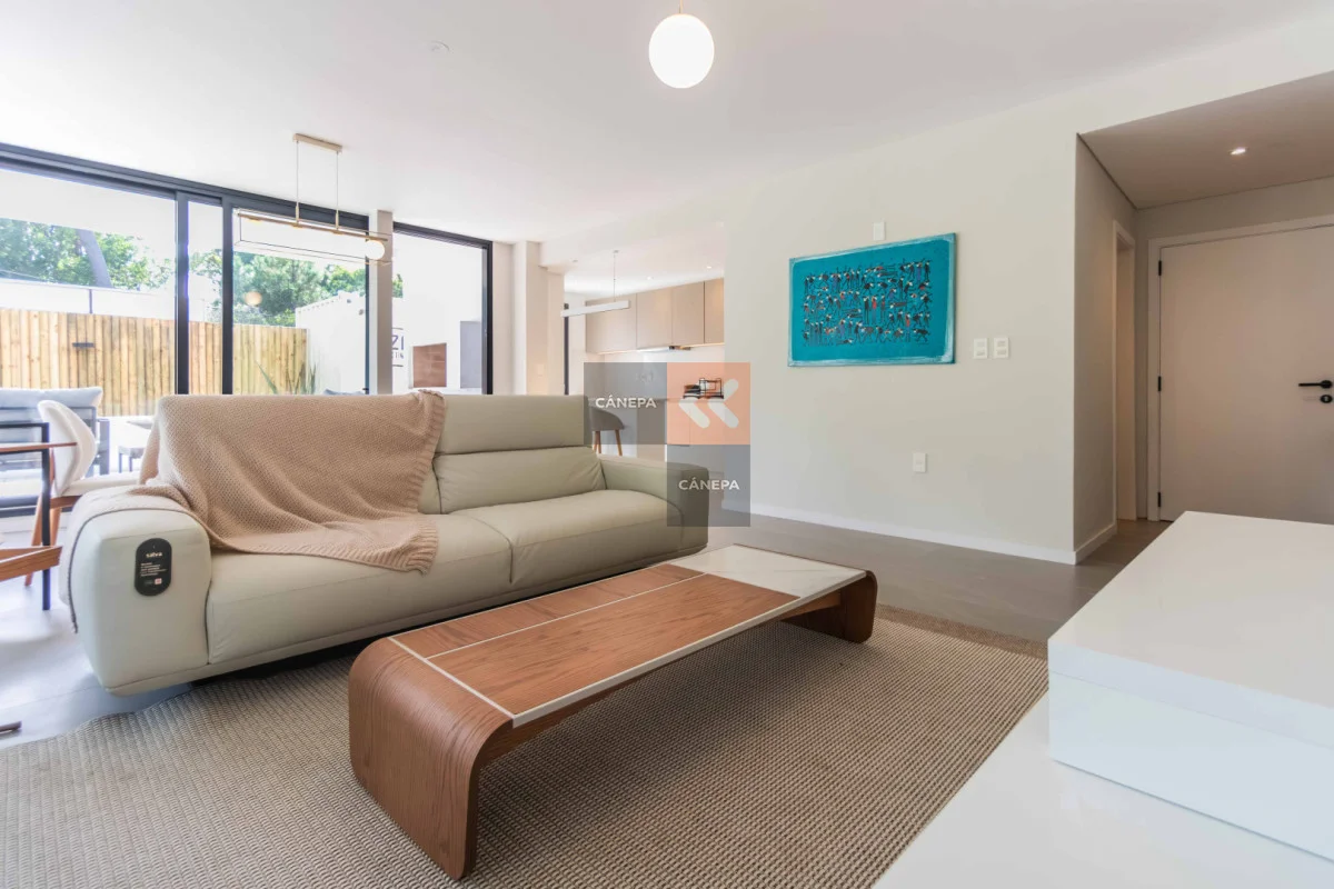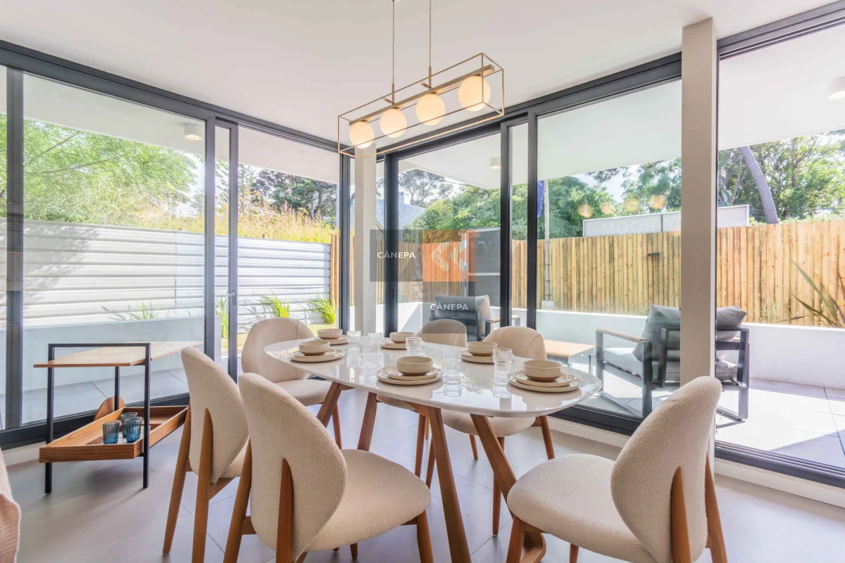 Este apartamento cuenta con distribución fluida que integra living, comedor y cocina, logrando salida al patio desde todos los ambientes