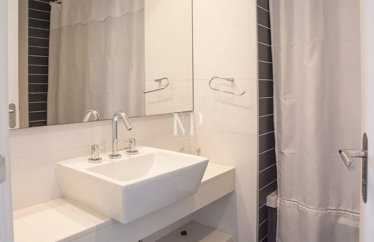 El equipamiento del apartamento incluye lavadero, TV, placards tanto en los dormitorios como en la cocina, campana, horno y bidet en los baños. Con una superficie aproximada de 85 m2, la unidad ofrece un espacio generoso y cómodo para los residentes.