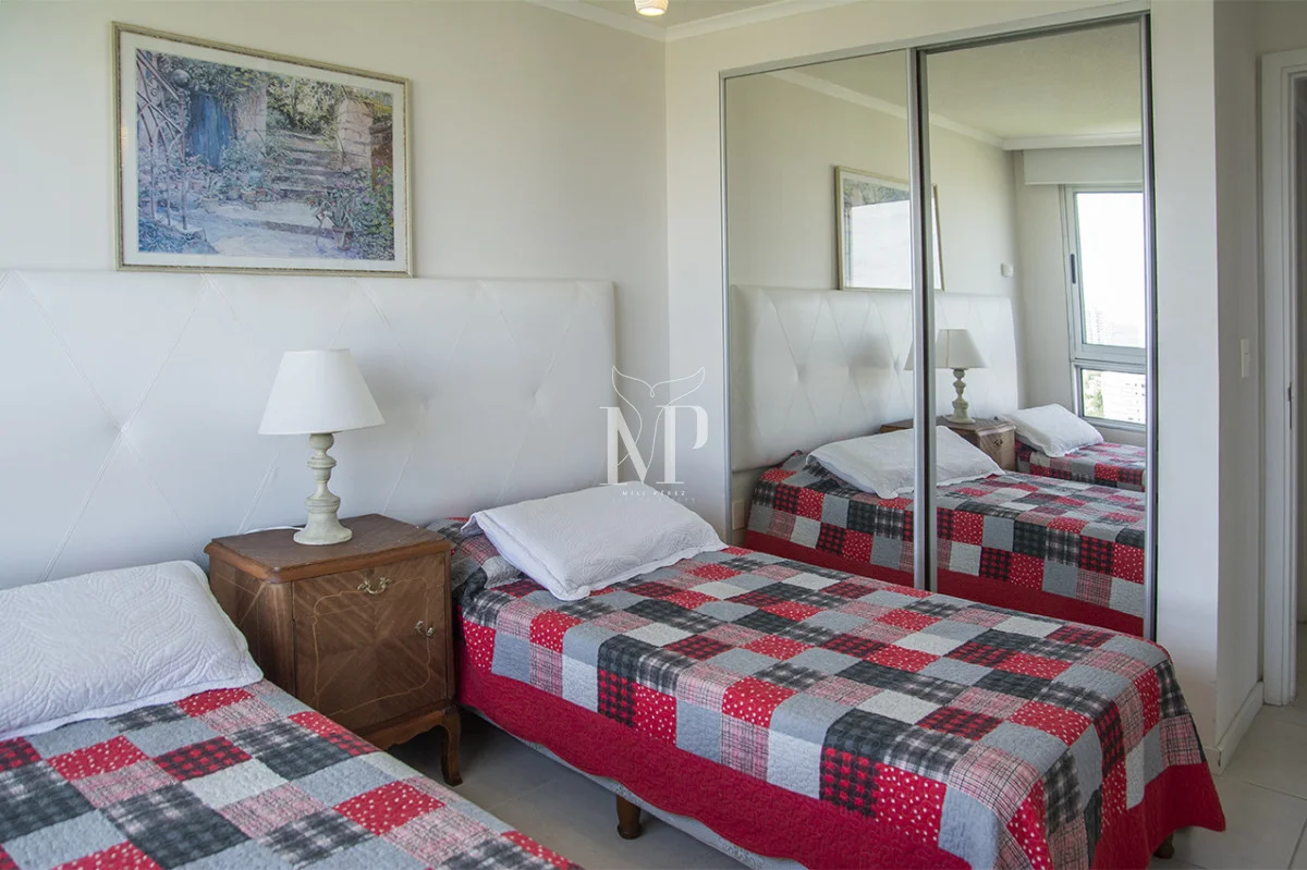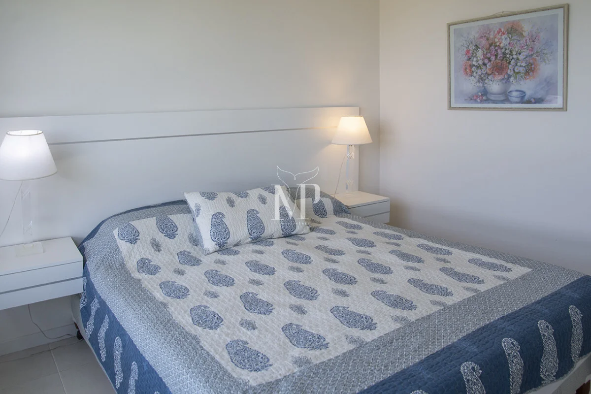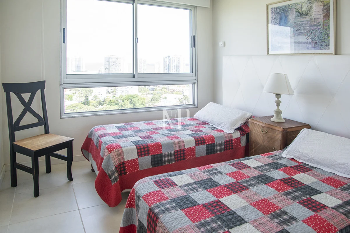 Este elegante apartamento, ubicado sobre la Avenida Roosevelt a pocos metros de la Playa Brava, ofrece una experiencia excepcional en Punta del Este. La unidad cuenta con 2 dormitorios y 2 baños, incluyendo 1 suite, con capacidad para alojar a 4 personas. El apartamento está finamente decorado, lo que agrega un toque de sofisticación al espacio.