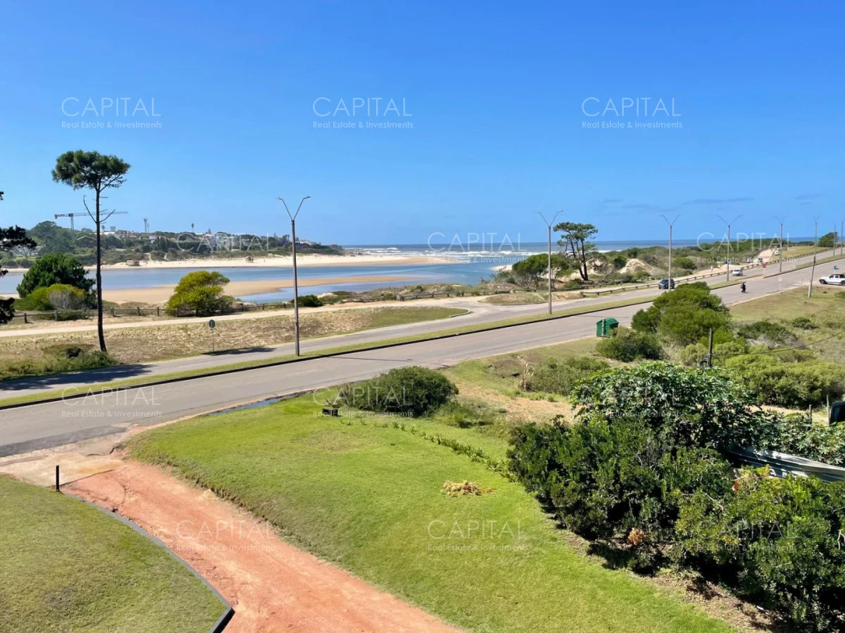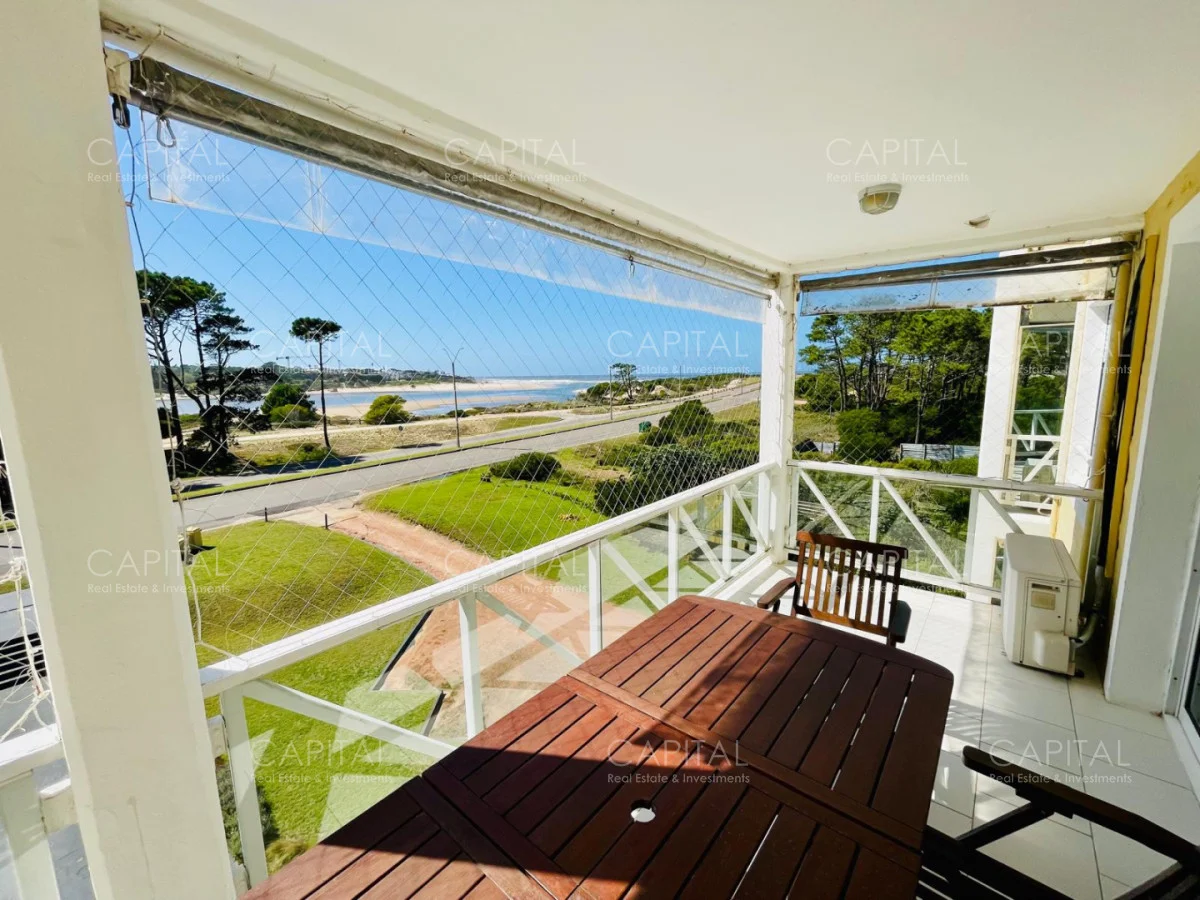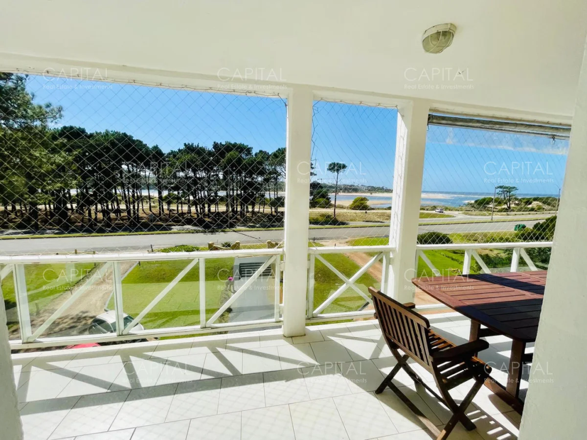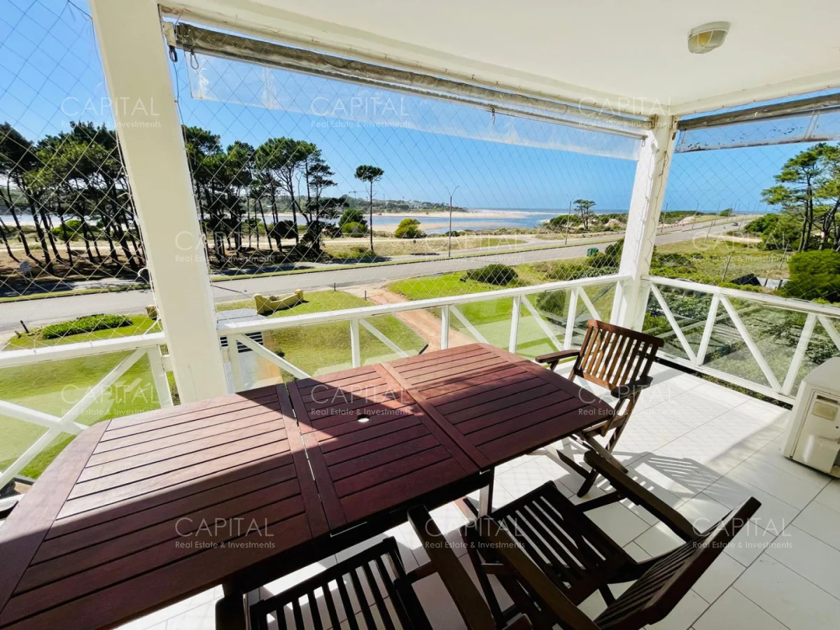 Excelente departamento en venta en edificio bajo sobre Playa Brava en la exclusiva zona de Rincón del Indio con hermosa vista a la desembocadura de La Barra. Cómodo living comedor con estufa a leña, gran terraza apaisada super disfrutable, amplia cocina definida con terraza lavadero con vista al mar, 2 dormitorios ( ppal en suite), 2 baños completos, ambos dormitorios al frente con vista al mar.Totalmente equipado. Aire acondicionado en los ambientes. Garage doble. Edificio con servicio de mucamas, piscina exterior, cancha de tenis, barbacoa muy bien equipada.