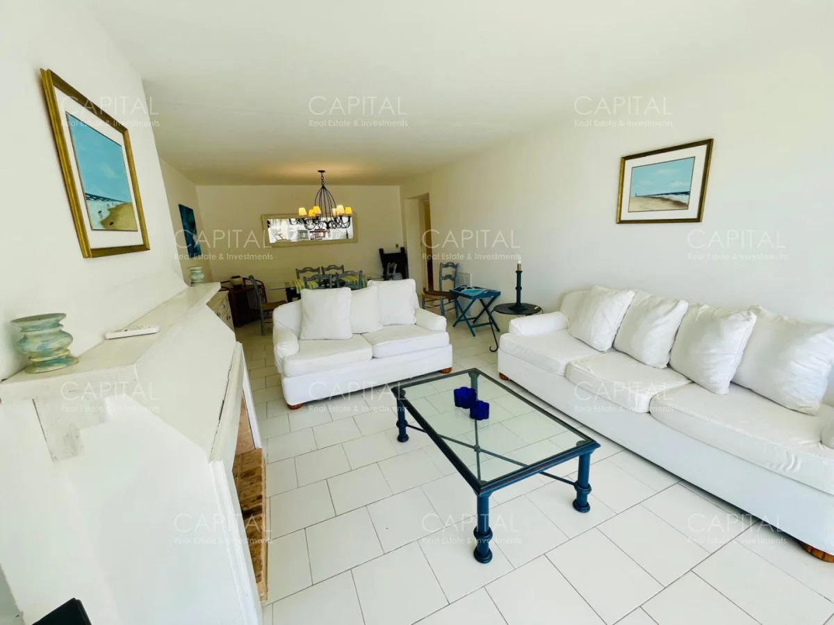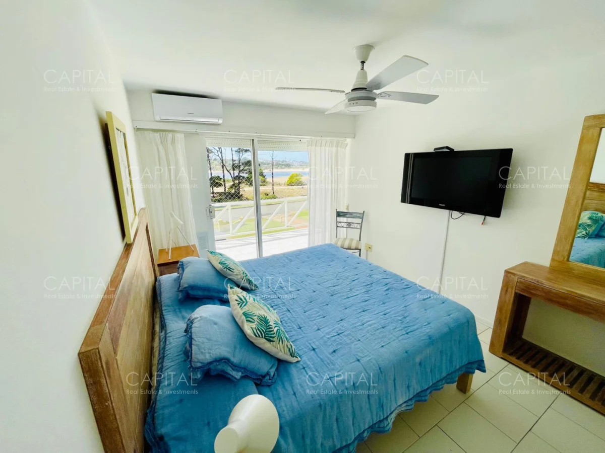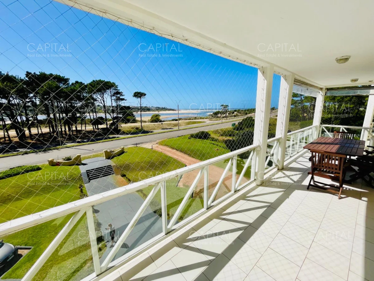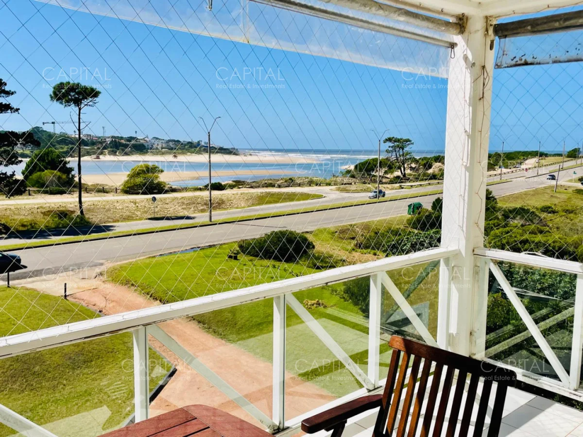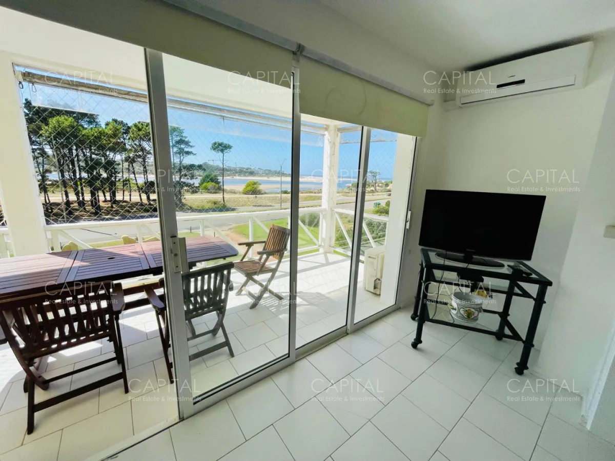 Excelente departamento en venta en edificio bajo sobre Playa Brava en la exclusiva zona de Rincón del Indio con hermosa vista a la desembocadura de La Barra. Cómodo living comedor con estufa a leña, gran terraza apaisada super disfrutable, amplia cocina definida con terraza lavadero con vista al mar, 2 dormitorios ( ppal en suite), 2 baños completos, ambos dormitorios al frente con vista al mar.Totalmente equipado. Aire acondicionado en los ambientes. Garage doble. Edificio con servicio de mucamas, piscina exterior, cancha de tenis, barbacoa muy bien equipada.