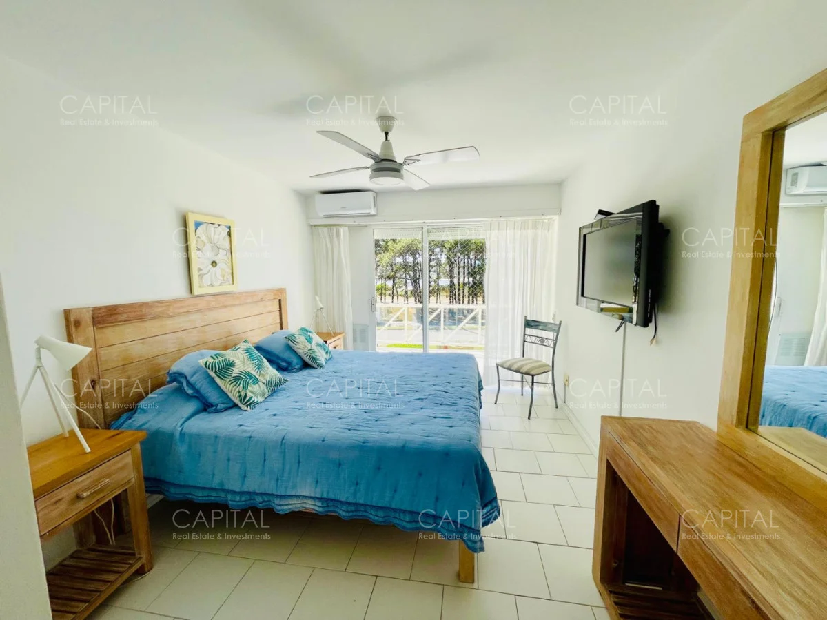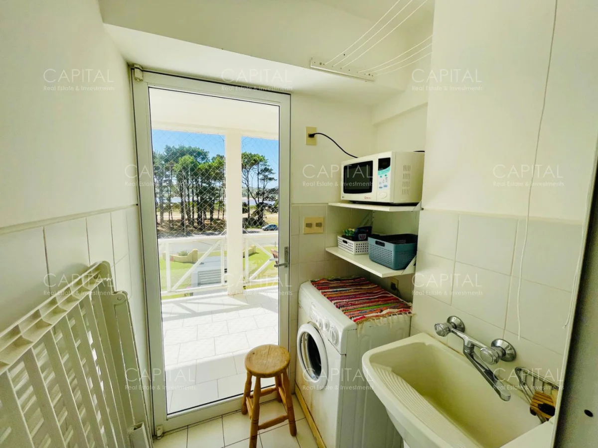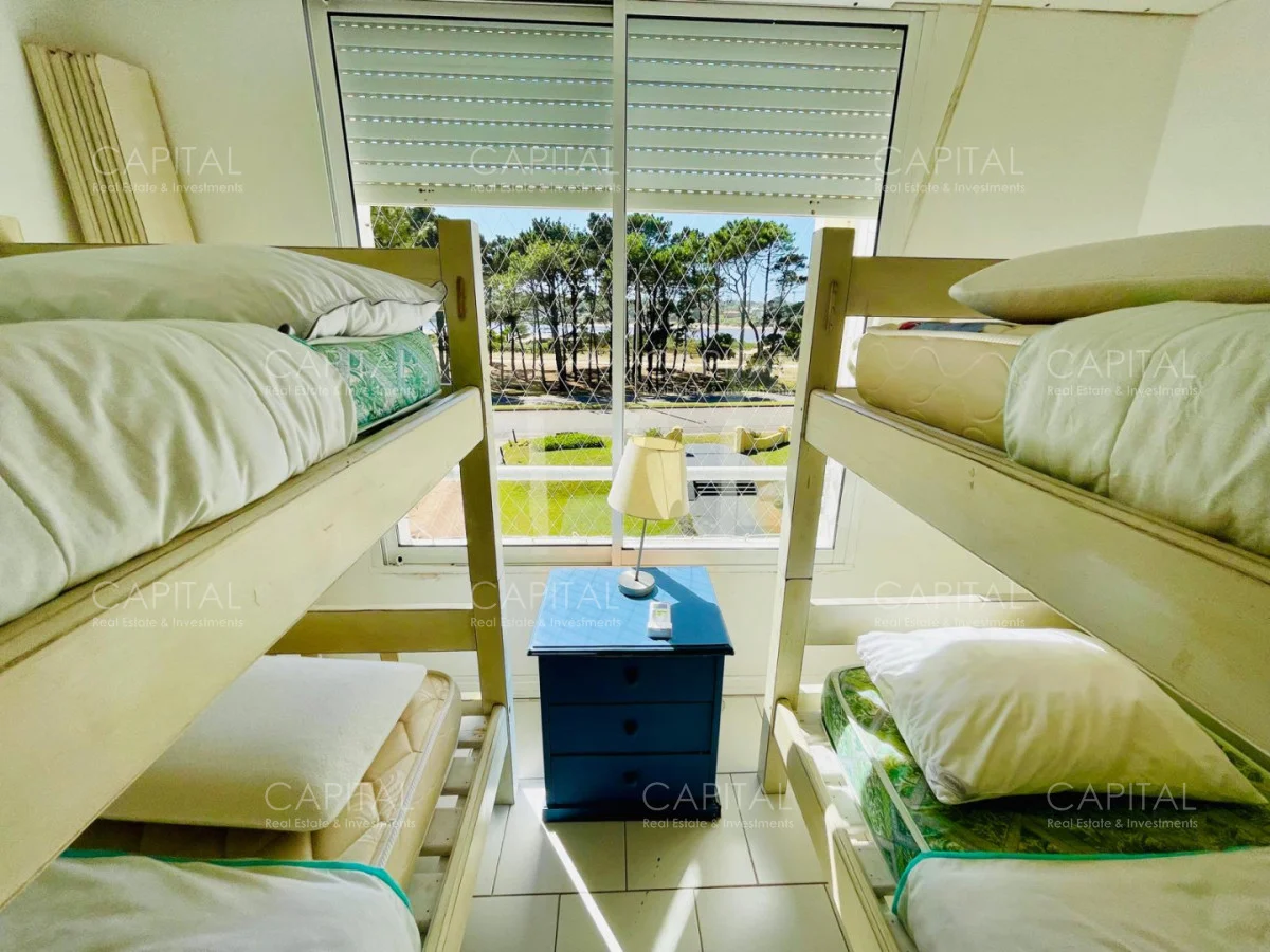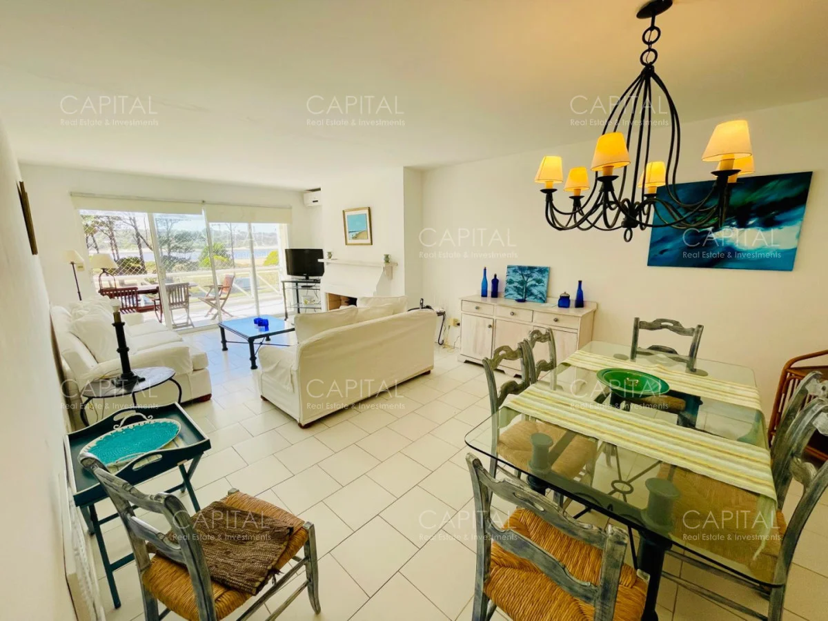 Excelente departamento en venta en edificio bajo sobre Playa Brava en la exclusiva zona de Rincón del Indio con hermosa vista a la desembocadura de La Barra. Cómodo living comedor con estufa a leña, gran terraza apaisada super disfrutable, amplia cocina definida con terraza lavadero con vista al mar, 2 dormitorios ( ppal en suite), 2 baños completos, ambos dormitorios al frente con vista al mar.Totalmente equipado. Aire acondicionado en los ambientes. Garage doble. Edificio con servicio de mucamas, piscina exterior, cancha de tenis, barbacoa muy bien equipada.