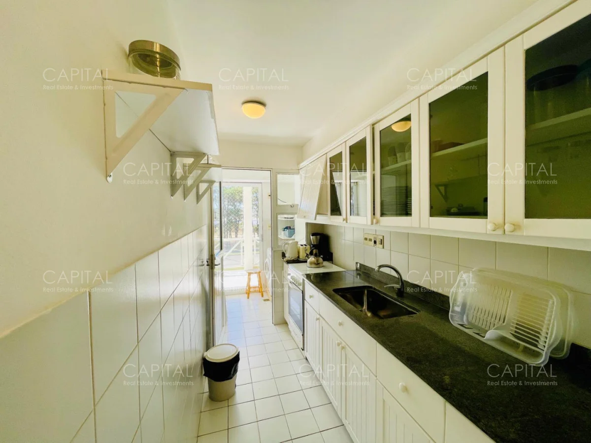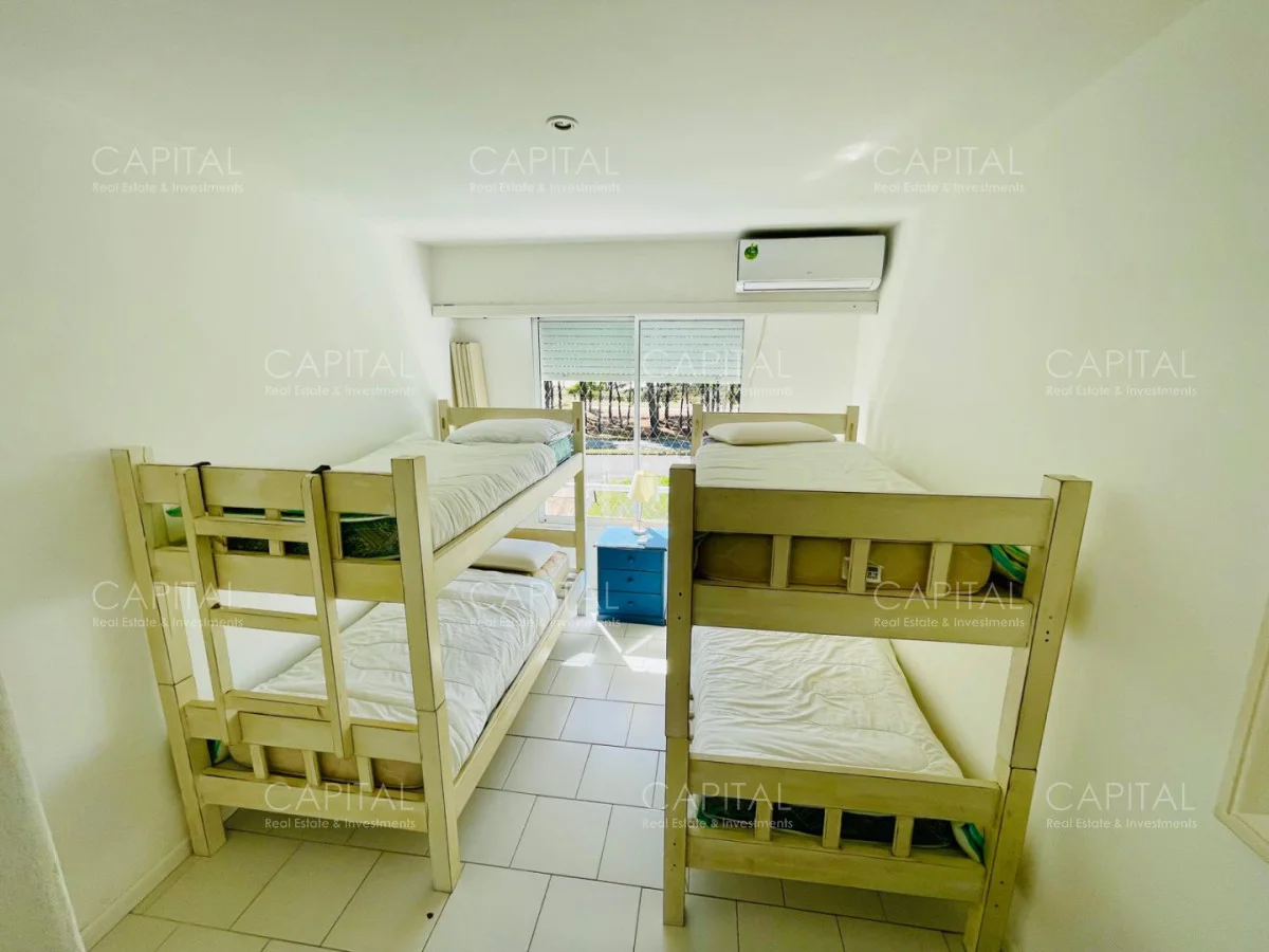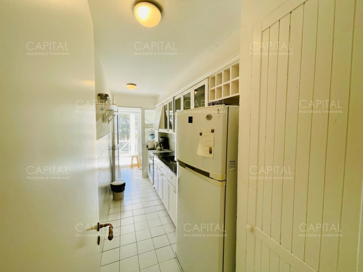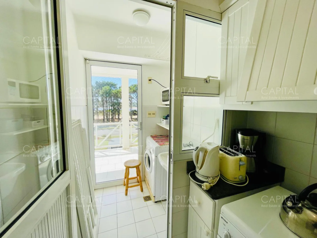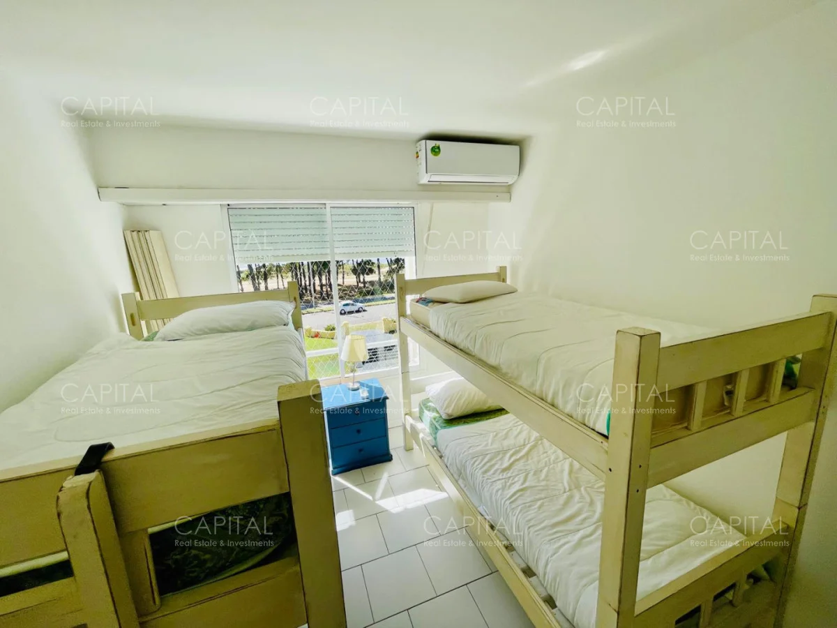 Excelente departamento en venta en edificio bajo sobre Playa Brava en la exclusiva zona de Rincón del Indio con hermosa vista a la desembocadura de La Barra. Cómodo living comedor con estufa a leña, gran terraza apaisada super disfrutable, amplia cocina definida con terraza lavadero con vista al mar, 2 dormitorios ( ppal en suite), 2 baños completos, ambos dormitorios al frente con vista al mar.Totalmente equipado. Aire acondicionado en los ambientes. Garage doble. Edificio con servicio de mucamas, piscina exterior, cancha de tenis, barbacoa muy bien equipada.