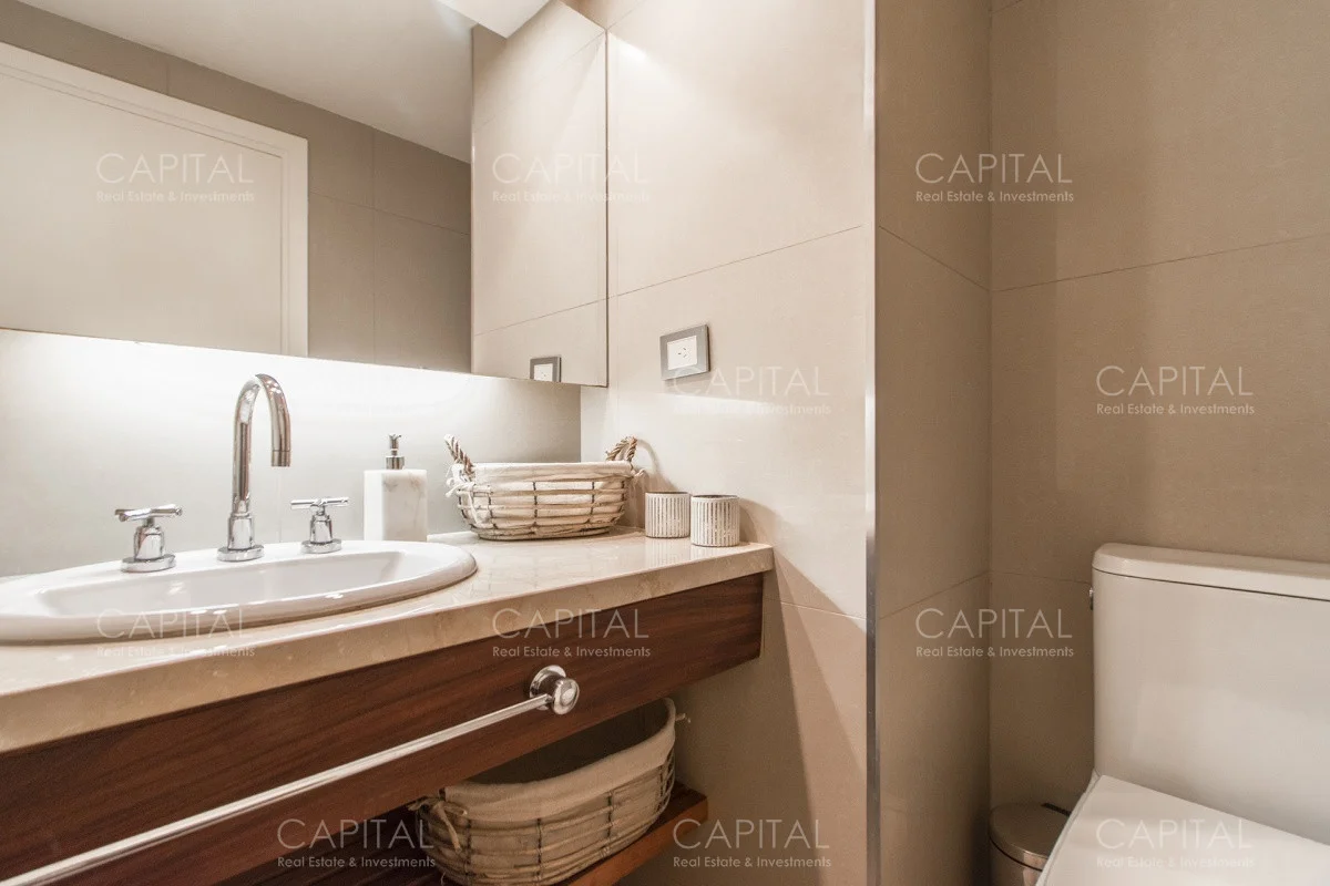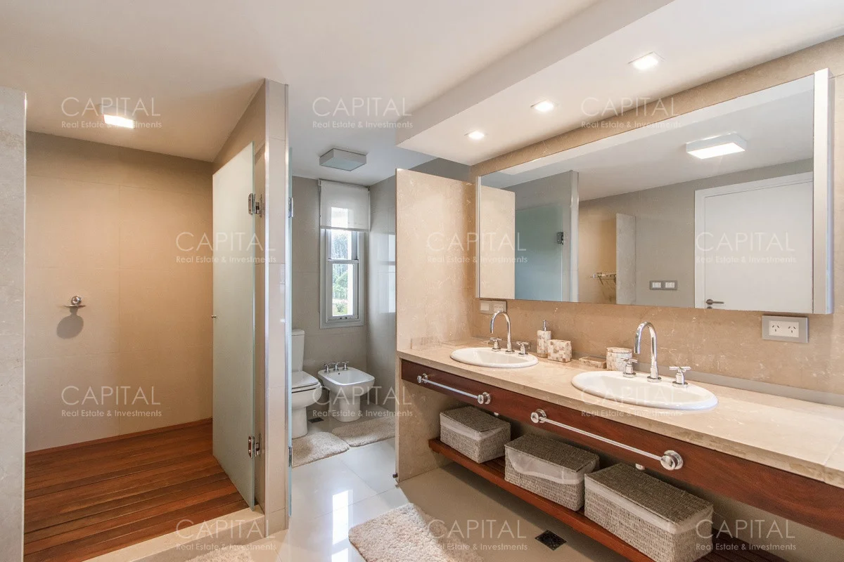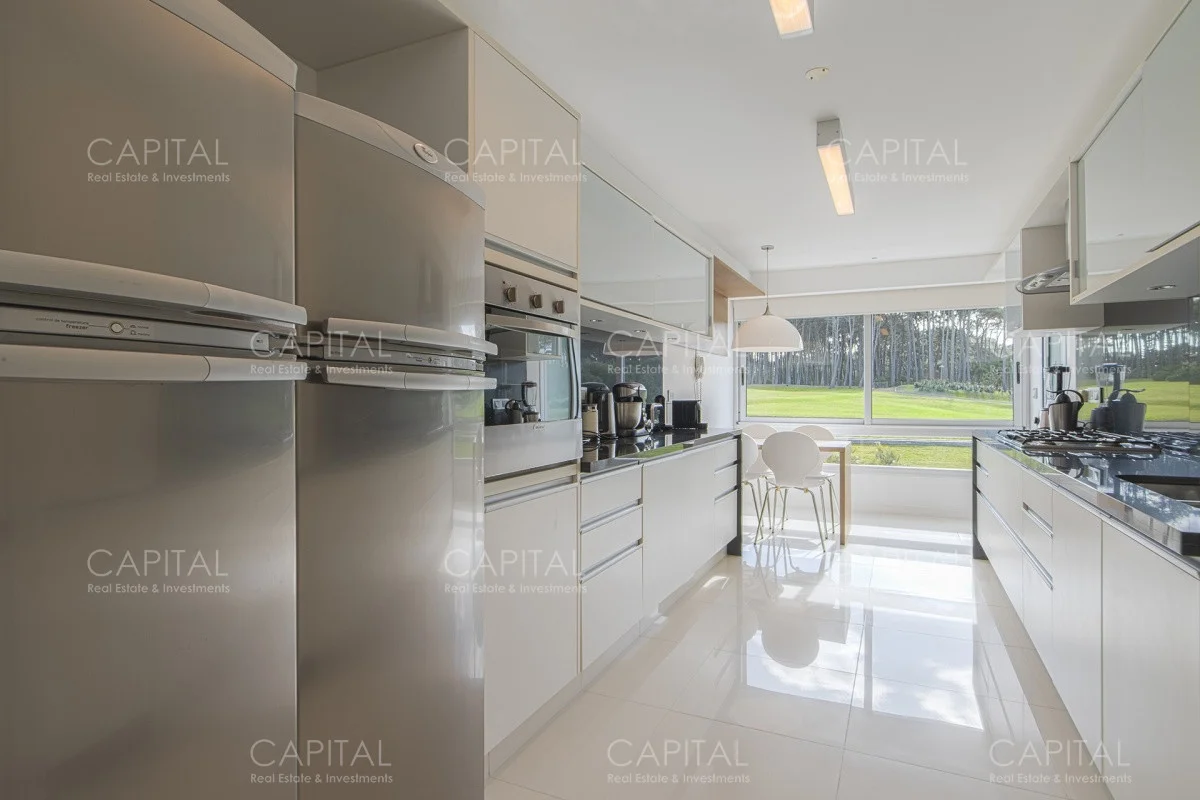 El mismo cuenta con tres dormitorios en suite, living comedor con salida a la terraza con parrillero propio, toilette, cocina completa con desayunador, lavadero, dependencia de servicio con baño.