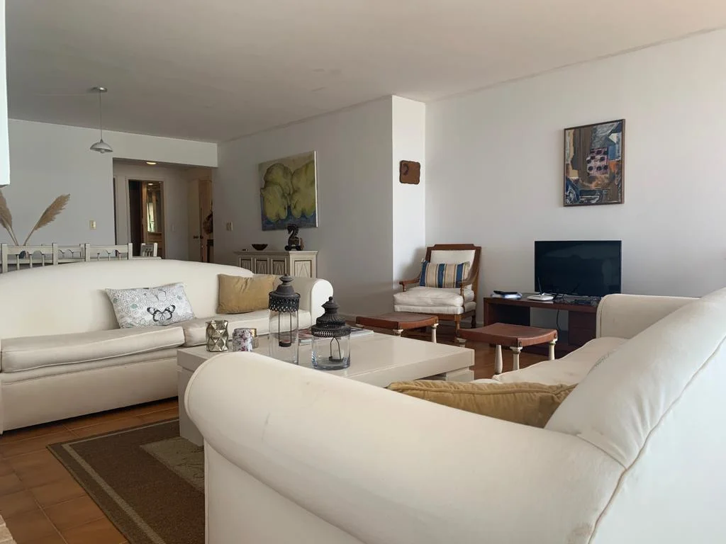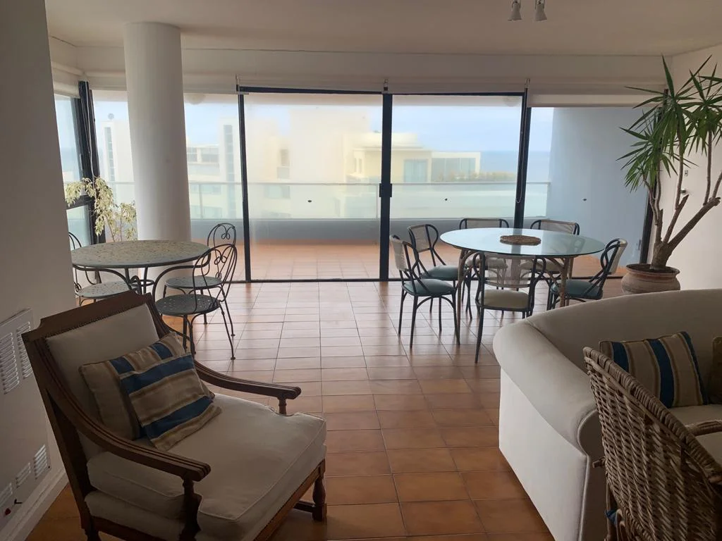 Amplio departamento de 3 dormitorios en suite mas dependencia de servicio en el Ed. Garden Tower. Vista a la brava, Playa de los ingleses desde su gran balcón y living comedor. Desde las habitaciones también podes ver el mar. Cocina completa con lavadero. El edificio cuenta con servicio de mucama opcional, cancha de tennis y piscina. Tiene 2 cocheras.