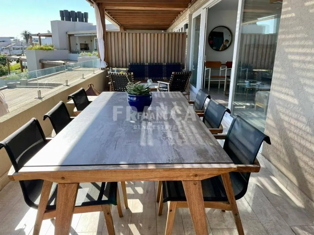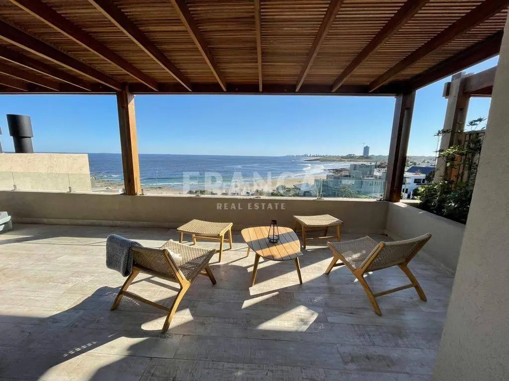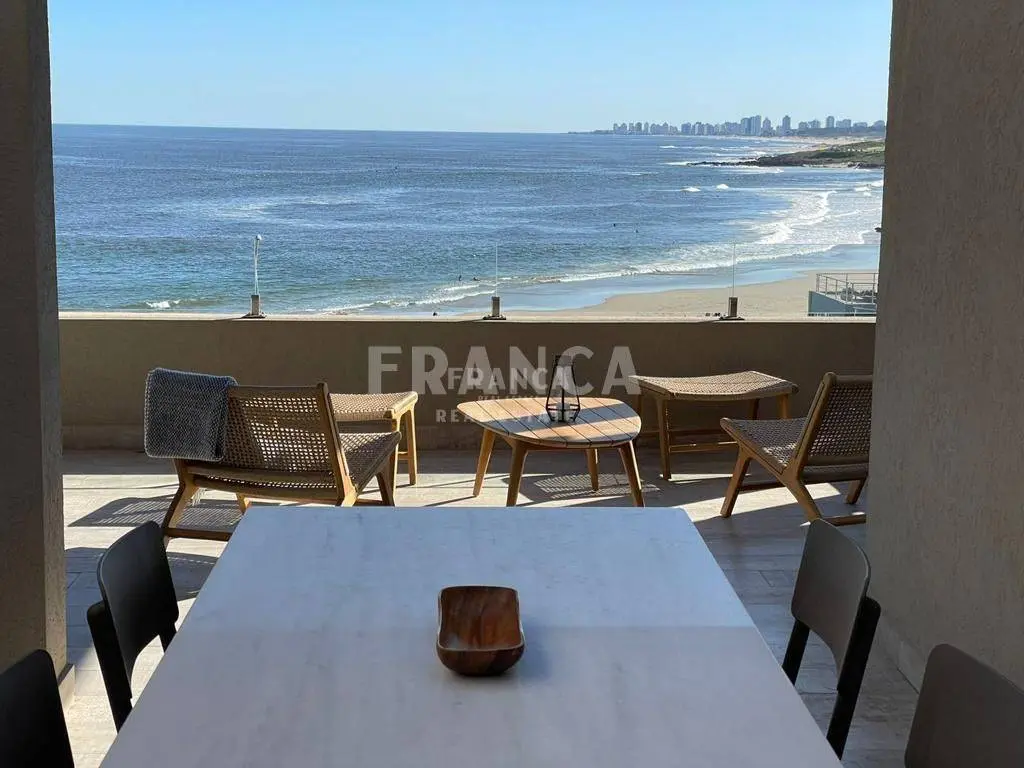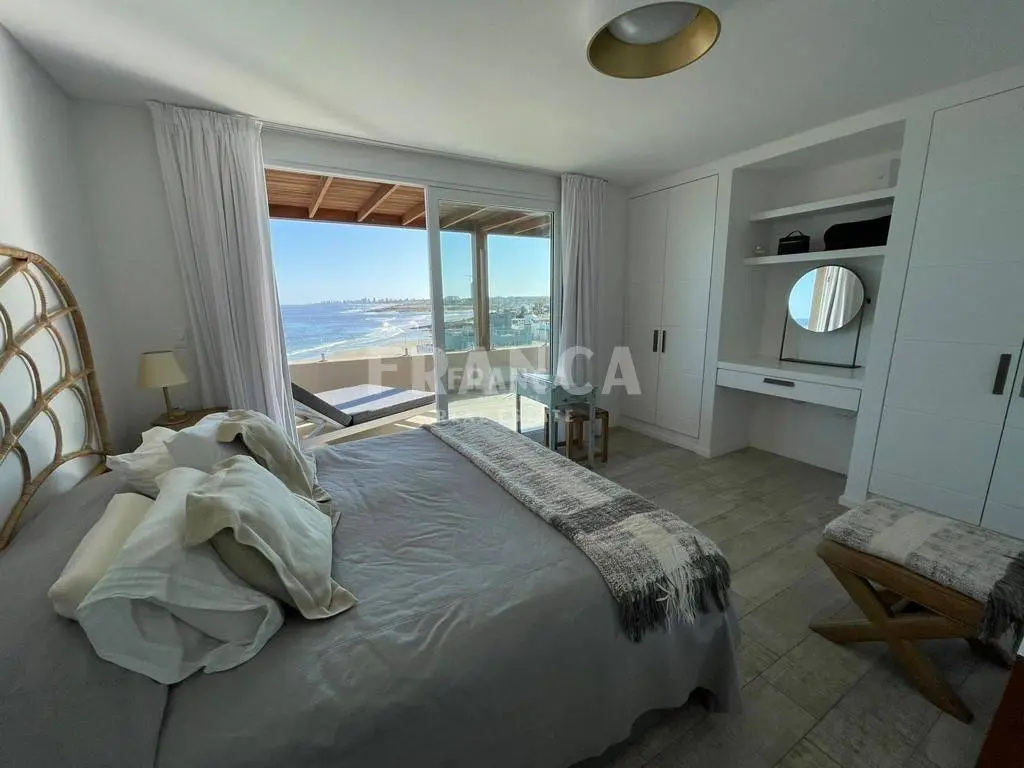 Alquiler temporario de Apartamento 3 DORMITORIOS en La Barra, Punta del Este. El departamento es uno de los dos duplex centrales superiores del nuevo Edificio Palcos de la Posta, situado en el terreno de la mítica posada de La posta del Cangrejo, frente a la playa que lleva ese nombre con uno de los atardeceres más lindos de la zona con el sol poniéndose sobre la península de Punta del Este. Son 3er y 4to piso con cochera y dependencia de servicio en planta baja. En la planta inferior cuenta con living comedor con cocina integrada todo con salida a una terraza con parrilla con una maravillosa vista. Toilette de recepción. Dos habitaciones en suite. En la planta alta esta la Suite principal con salida a una gran terraza privada. Todo puesto de muy buen gusto con lindos muebles de diseño. El edificio cuenta con servicio de playa, piscina, solarium, servicios de limpieza diario, wifi por fibra óptica, aire acondicionado en todos los ambientes, laundry, Sum y gimnasio y una plaza de cochera techada además de las de cortesía. Se alquila con ropa blanca. Servicio de limpieza todos los días. Wifi por fibra óptica de Antel en ambos pisos. Aire acondicionado en todos los ambientes. El edificio cuenta con laundry, SUM y GYM. . Caracteristicas: ALTILLO, AZOTEA, BALCON, BAULERA, COMEDOR, DEPENDENCIA DE SERVICIO, DEPOSITO, DORMITORIO EN SUITE, GARAJE, LAVANDER?A, LIVING, LIVING COMEDOR, TOILETTE, VESTIDOR, APTO PARA FAMILIAS/NI?OS, CONEXI?N A INTERNET, ESTACIONAMIENTO, LAVAVAJILLAS, PLACARD EN DORMITORIO, SALA DE REUNIONES, SUM, CALEFON, COCINA, HELADERA, LAVARROPAS, MICROONDAS, SISTEMA RIEGO, TELEFONO, VIGILANCIA, WIFI, VISTA AL MAR XINTEL (FRO-FRO-249)