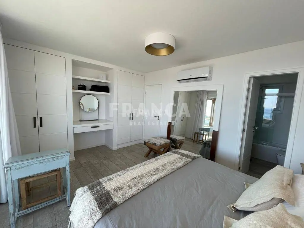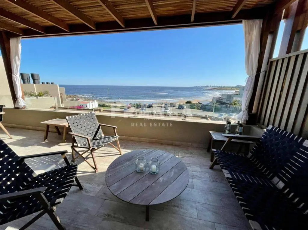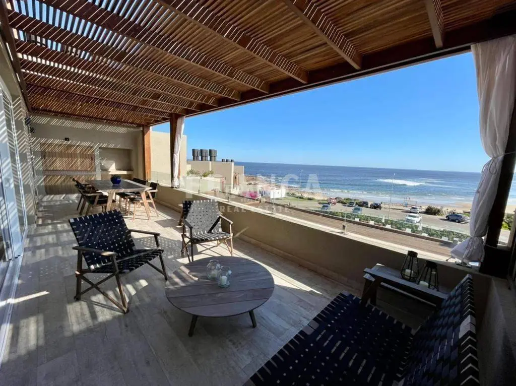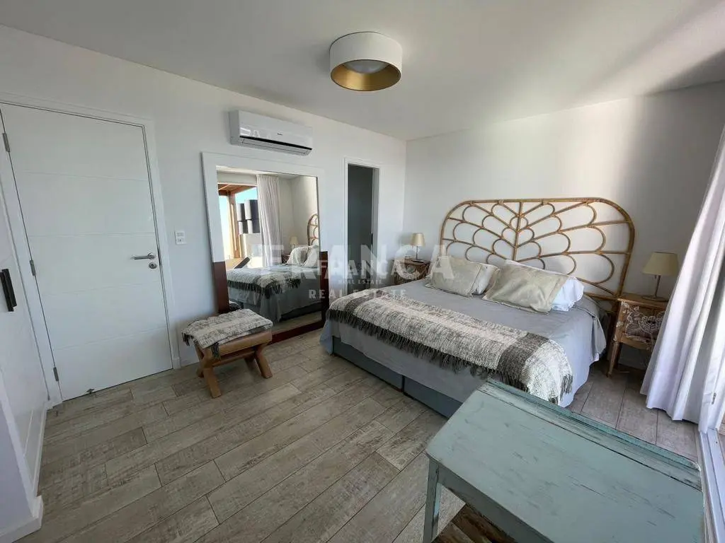 Alquiler temporario de Apartamento 3 DORMITORIOS en La Barra, Punta del Este. El departamento es uno de los dos duplex centrales superiores del nuevo Edificio Palcos de la Posta, situado en el terreno de la mítica posada de La posta del Cangrejo, frente a la playa que lleva ese nombre con uno de los atardeceres más lindos de la zona con el sol poniéndose sobre la península de Punta del Este. Son 3er y 4to piso con cochera y dependencia de servicio en planta baja. En la planta inferior cuenta con living comedor con cocina integrada todo con salida a una terraza con parrilla con una maravillosa vista. Toilette de recepción. Dos habitaciones en suite. En la planta alta esta la Suite principal con salida a una gran terraza privada. Todo puesto de muy buen gusto con lindos muebles de diseño. El edificio cuenta con servicio de playa, piscina, solarium, servicios de limpieza diario, wifi por fibra óptica, aire acondicionado en todos los ambientes, laundry, Sum y gimnasio y una plaza de cochera techada además de las de cortesía. Se alquila con ropa blanca. Servicio de limpieza todos los días. Wifi por fibra óptica de Antel en ambos pisos. Aire acondicionado en todos los ambientes. El edificio cuenta con laundry, SUM y GYM. . Caracteristicas: ALTILLO, AZOTEA, BALCON, BAULERA, COMEDOR, DEPENDENCIA DE SERVICIO, DEPOSITO, DORMITORIO EN SUITE, GARAJE, LAVANDER?A, LIVING, LIVING COMEDOR, TOILETTE, VESTIDOR, APTO PARA FAMILIAS/NI?OS, CONEXI?N A INTERNET, ESTACIONAMIENTO, LAVAVAJILLAS, PLACARD EN DORMITORIO, SALA DE REUNIONES, SUM, CALEFON, COCINA, HELADERA, LAVARROPAS, MICROONDAS, SISTEMA RIEGO, TELEFONO, VIGILANCIA, WIFI, VISTA AL MAR XINTEL (FRO-FRO-249)