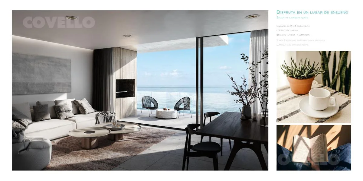 living comedor con cocina incluida y salida a terraza al frente y jardin de uso exclusivo.