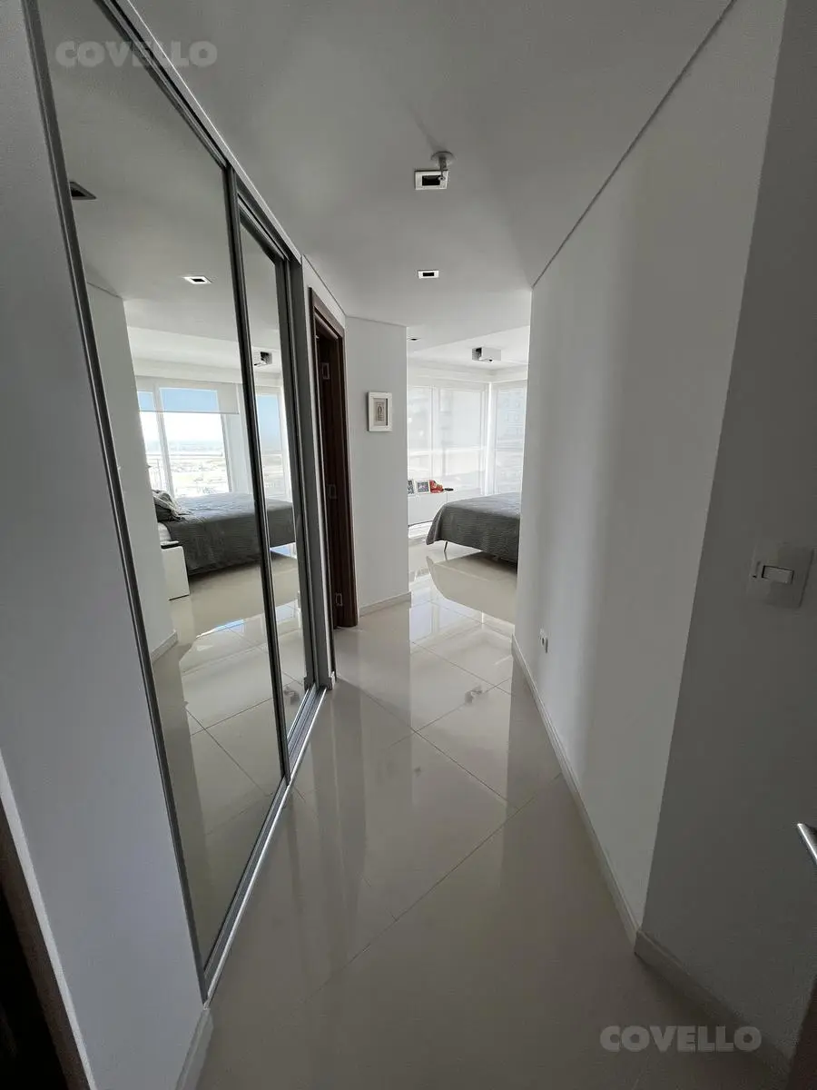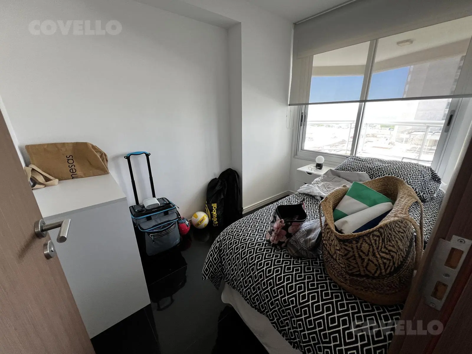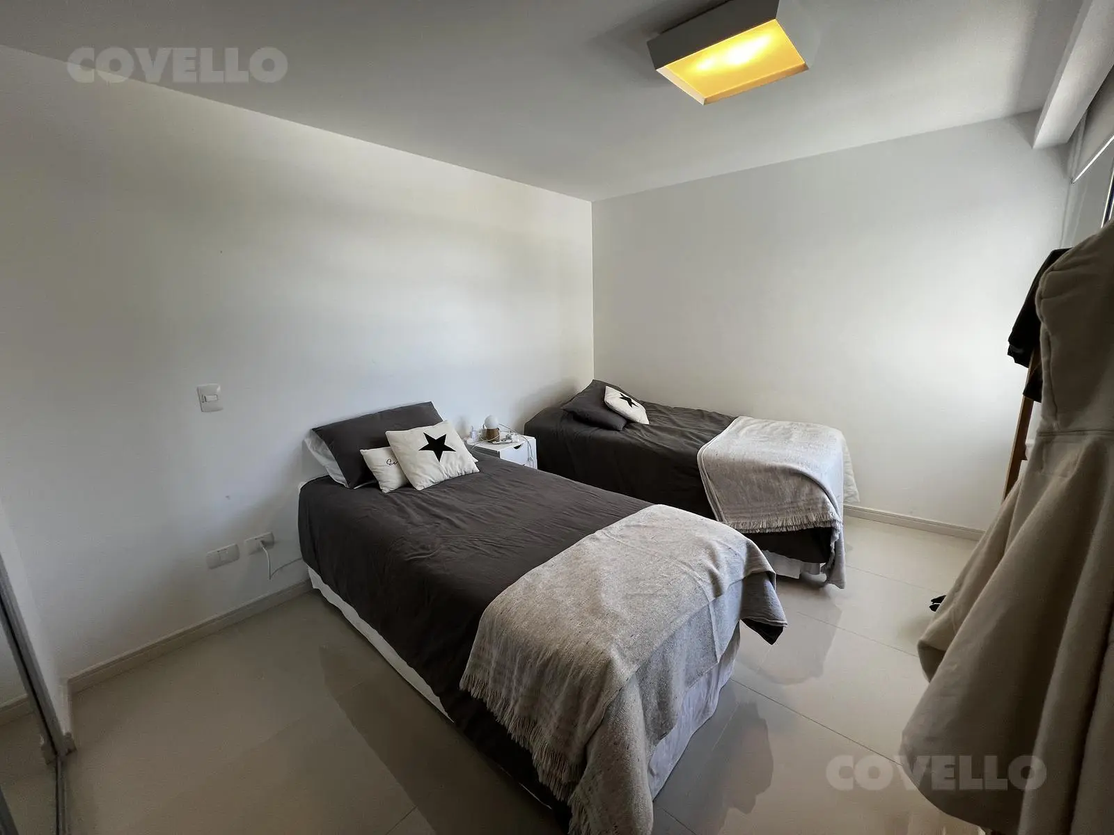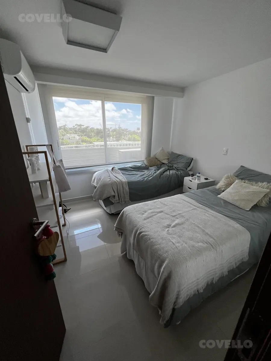 Departamento con exclusiva vista al mar de 4 ambientes. Tres dormitorios; dormitorio principal en suite con baño completo y vestidor con salida a balcón terraza con vista al mar. Amplio Living comedor con balcón terraza. Cocina con comedor diario con lavadero y vista al balcón. Segundo bano completo. Toilette. Dependencia de servicio. Parrillero individual. Palier Semi privado. Cochera